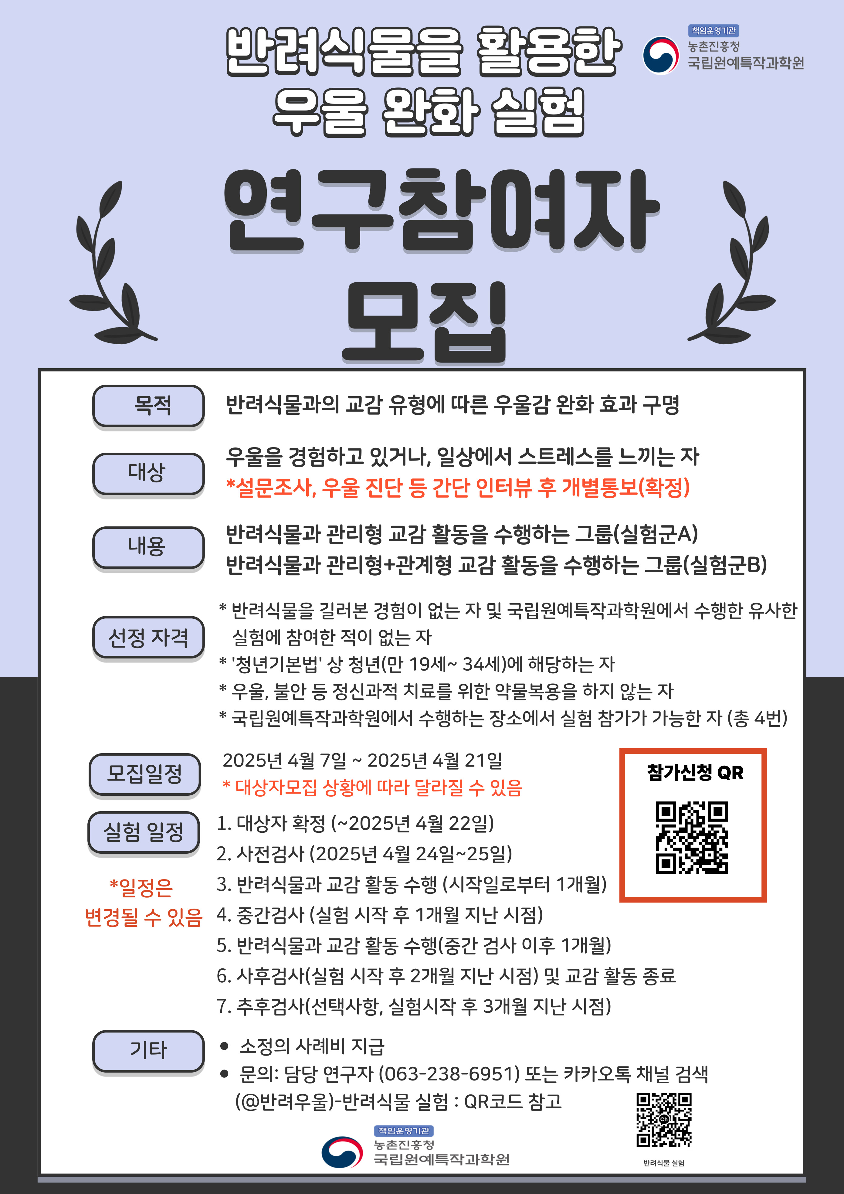 [연구참여자 모집]반려식물 활용 우울완화 연구 참여자를 모집합니다