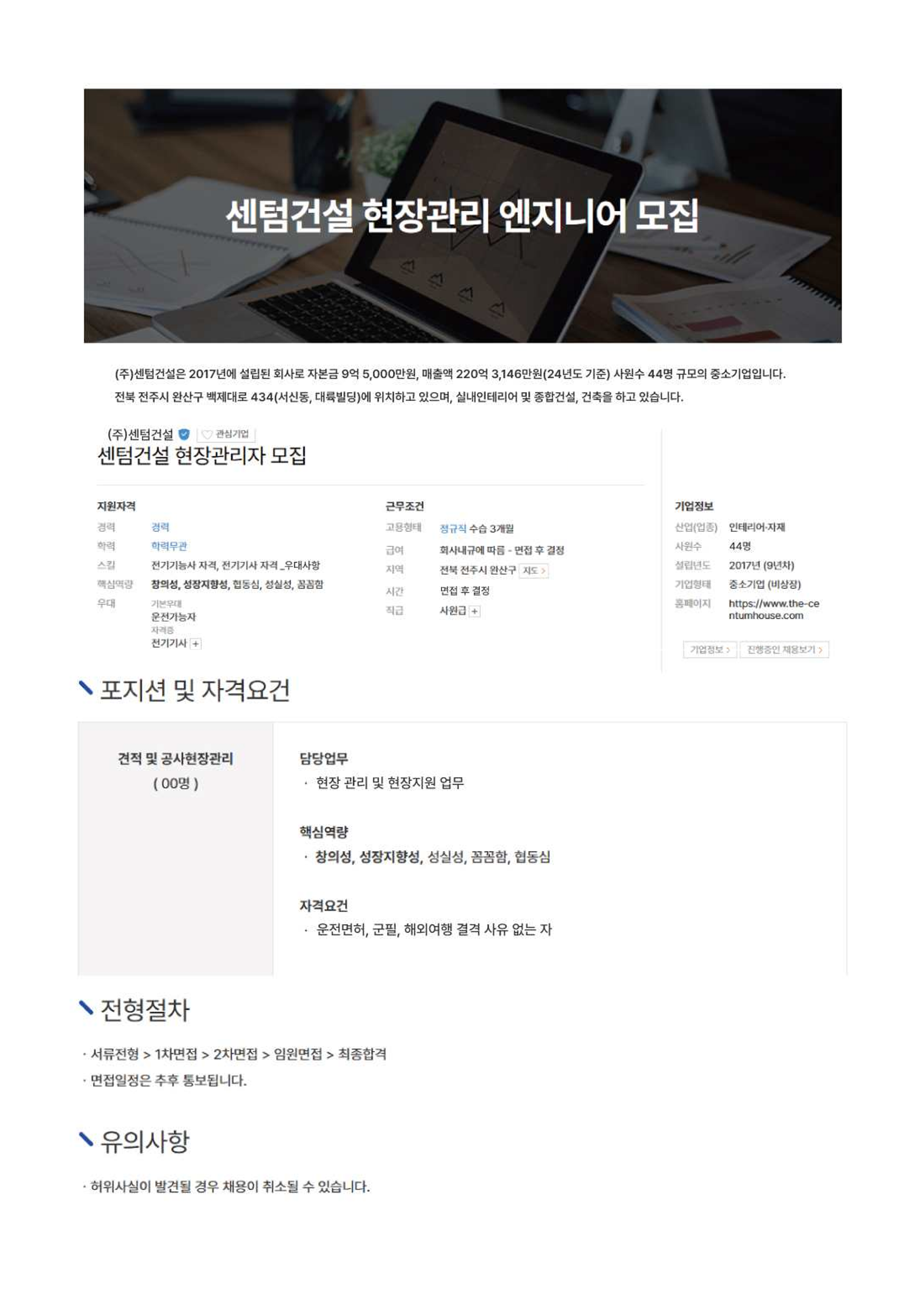 (주)센텀건설_신규채용공고_현장관리 및 현장지원업무