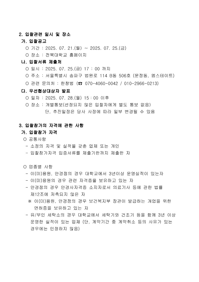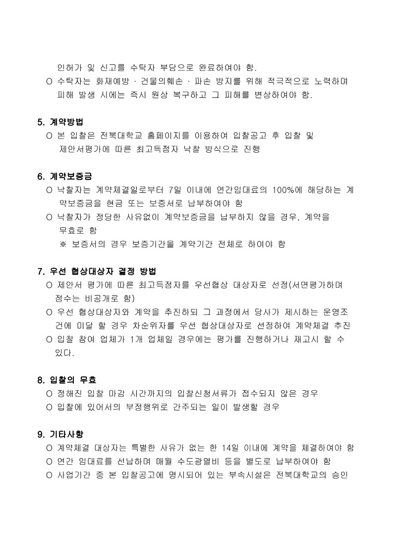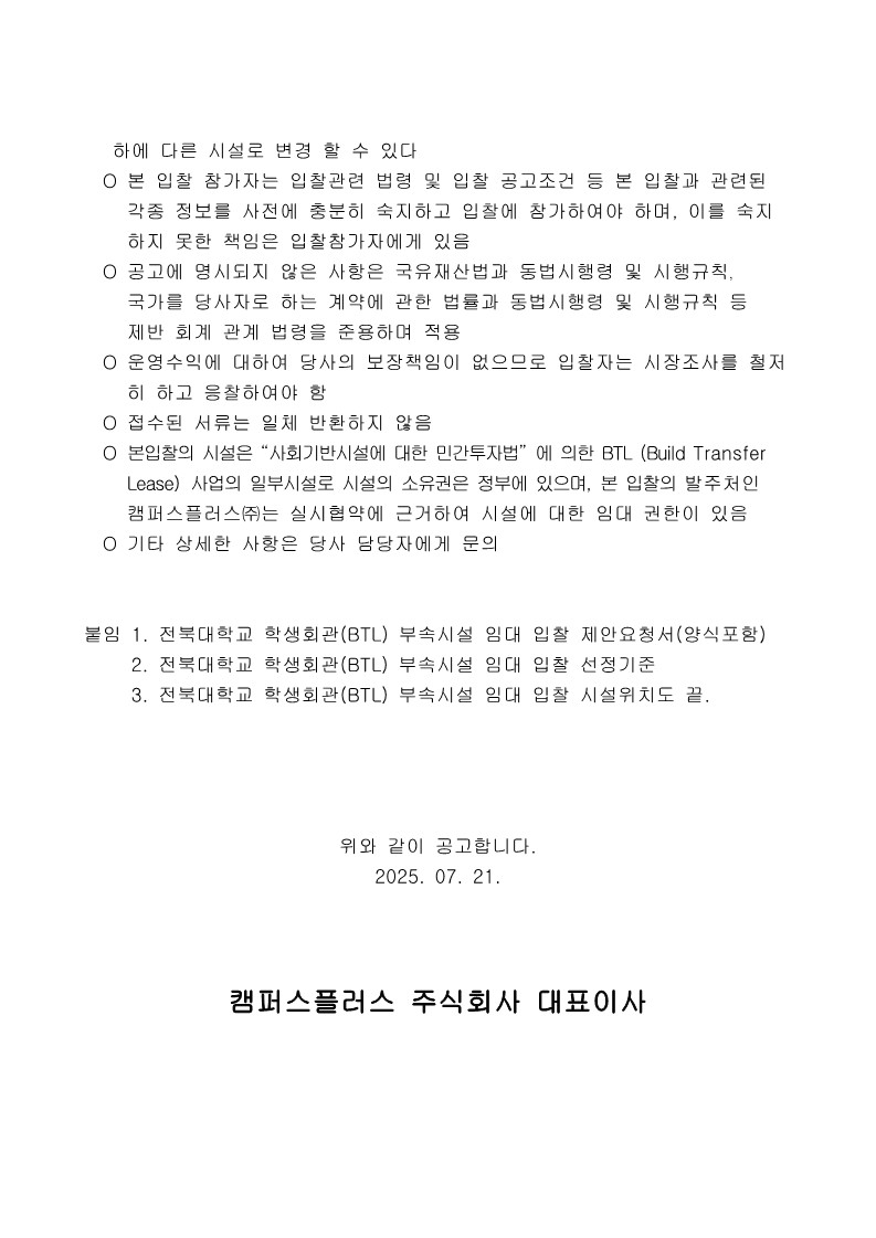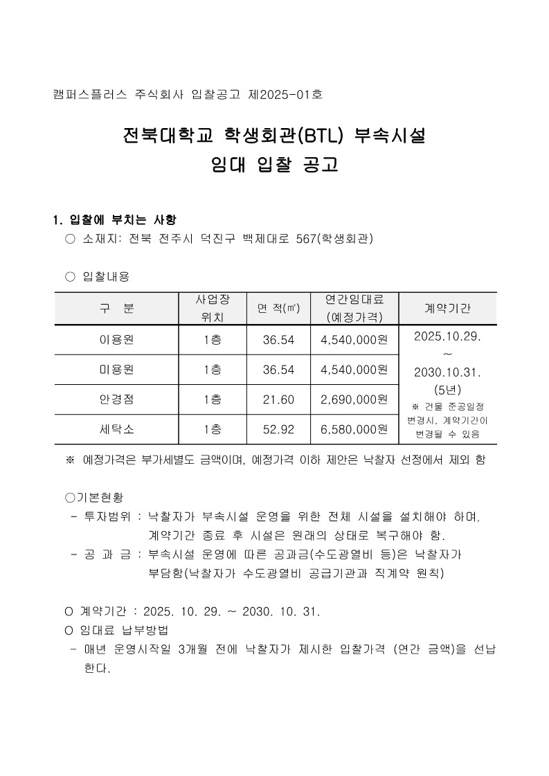 1-1. 전북대학교 학생회관(BTL) 부속시설 임대 입찰 공고문