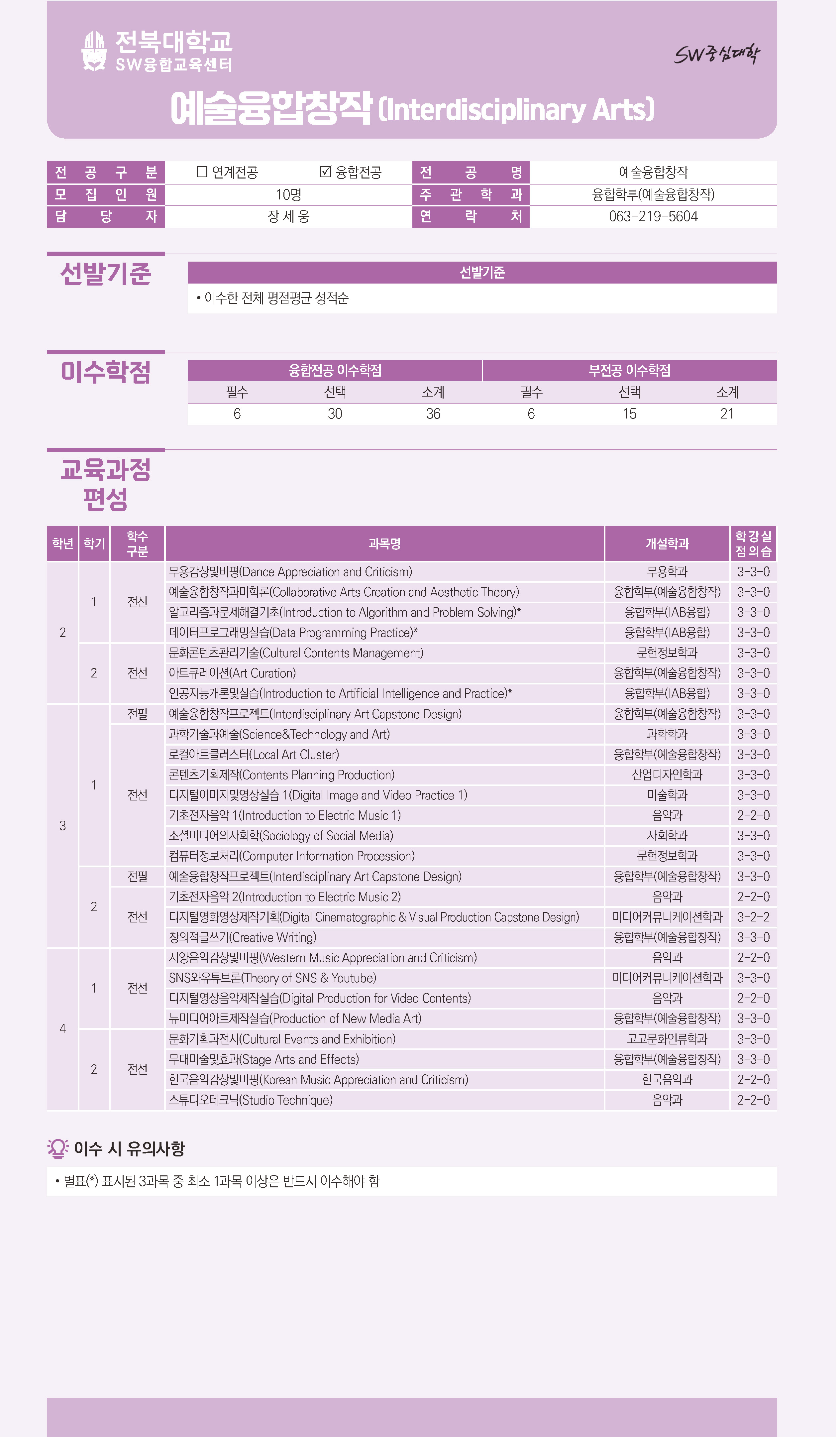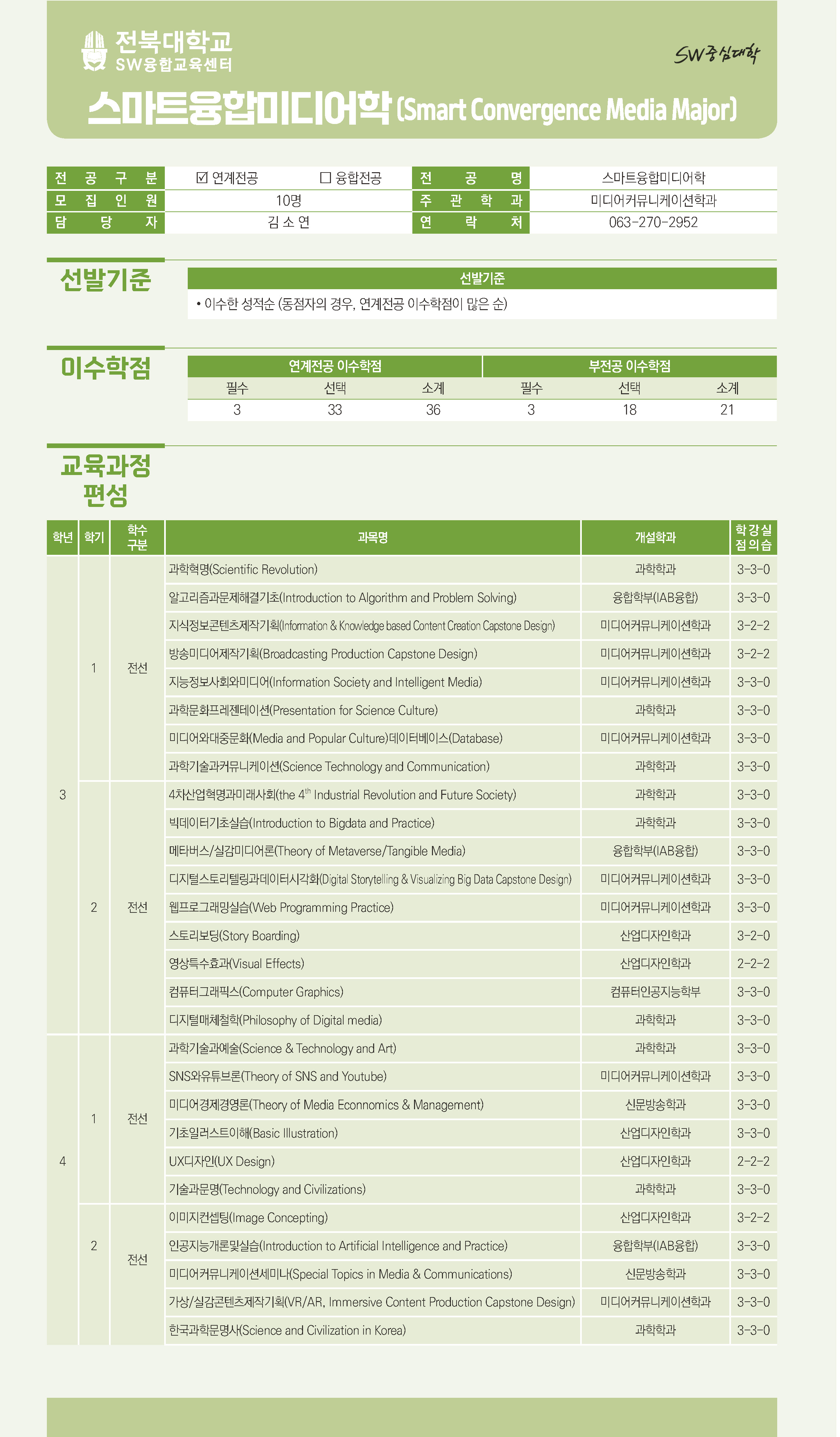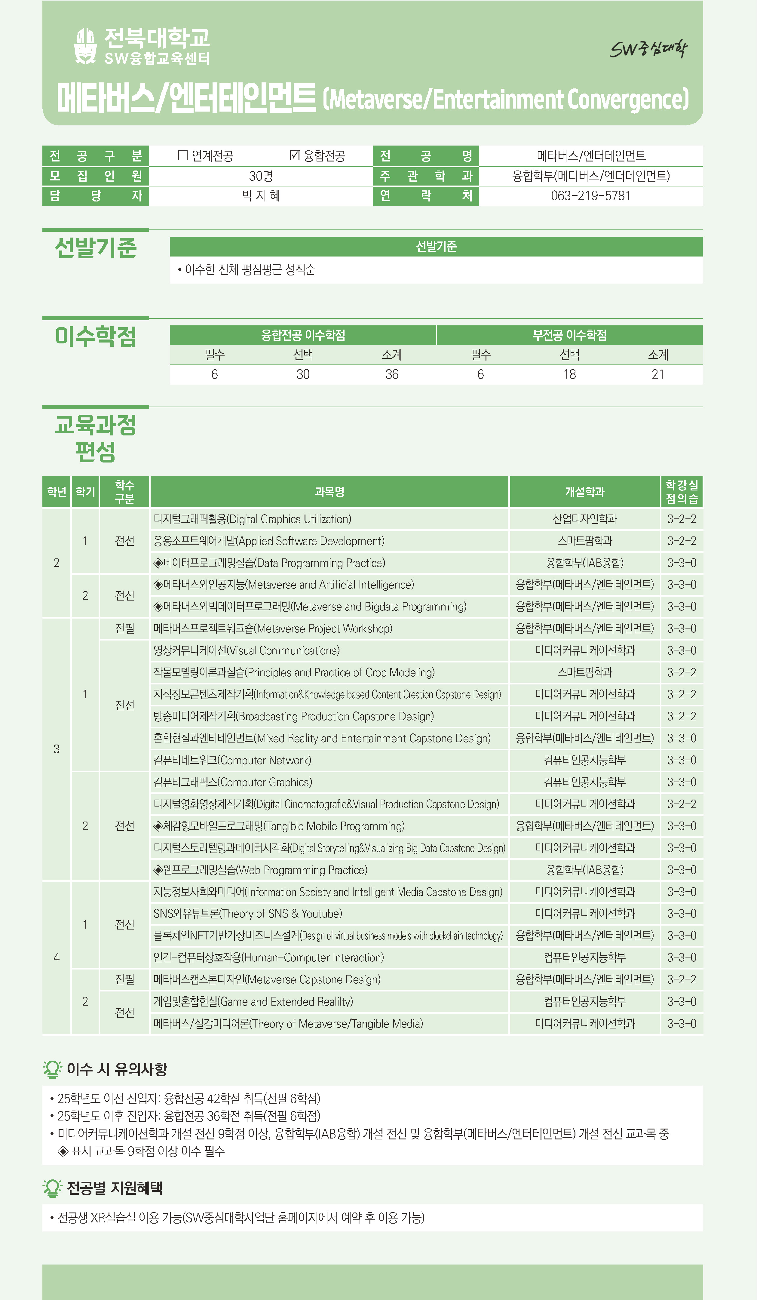 - SW융합전공: 예술융합창작, 에너지신산업, 메타버스/엔터테인먼트