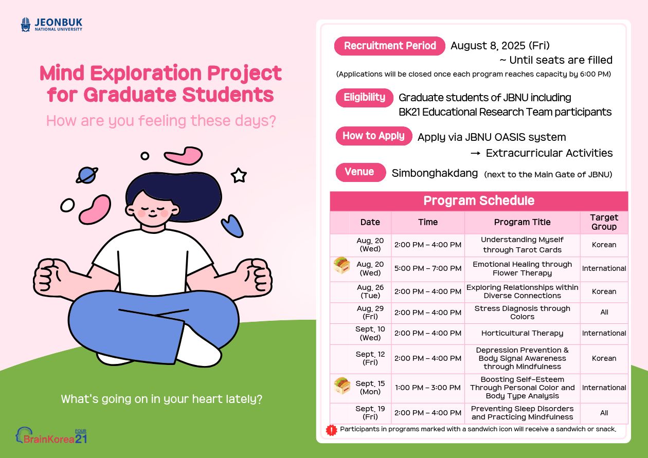 Eligibility: Graduate students of Jeonbuk National University (JBNU) and BK21 Educational Research Team graduate students