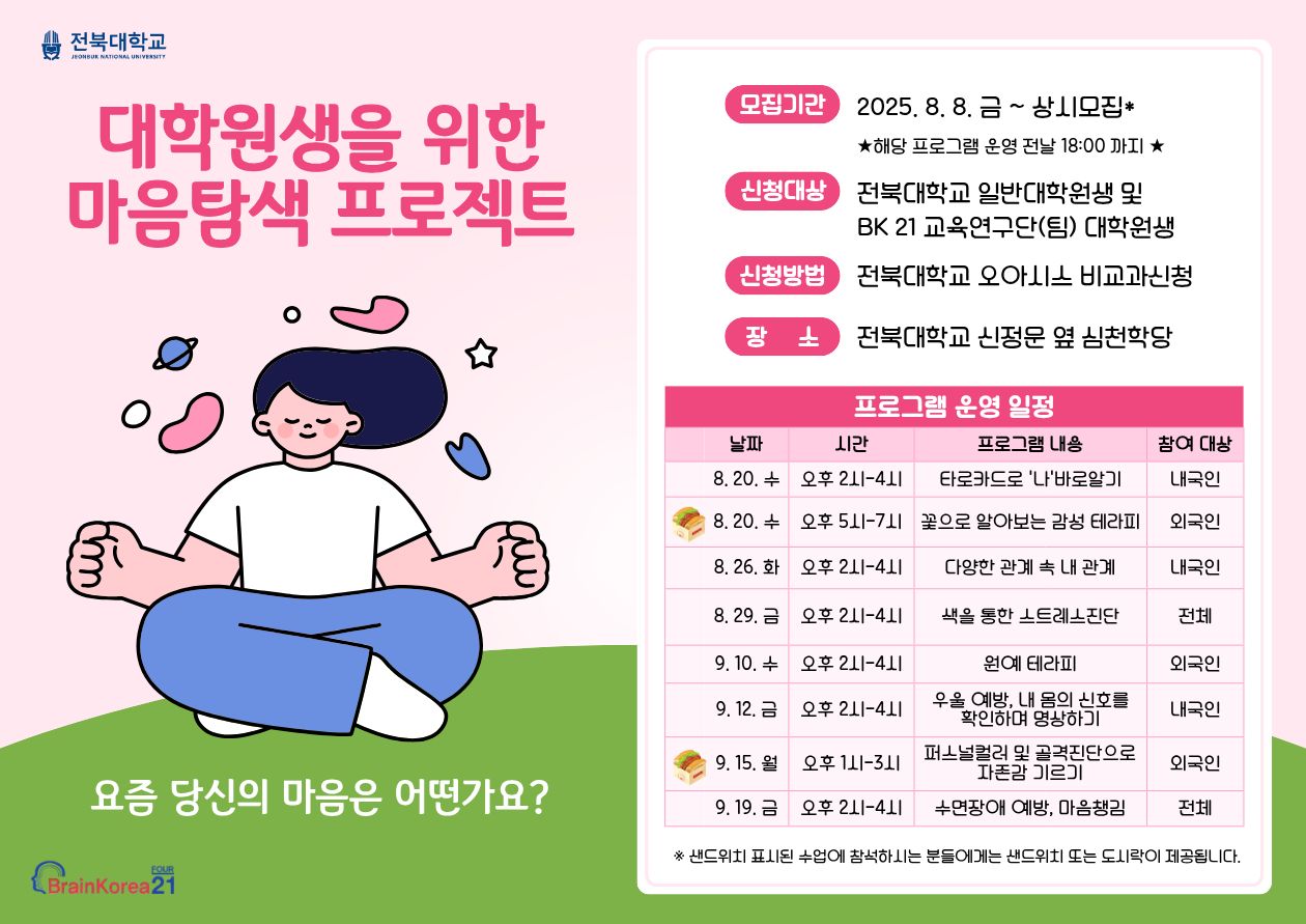 (모집기간) 2025년 8월 8일 금요일부터 ~ 20명 선착순 마감 (각 프로그램 운영 전일 18:00까지)