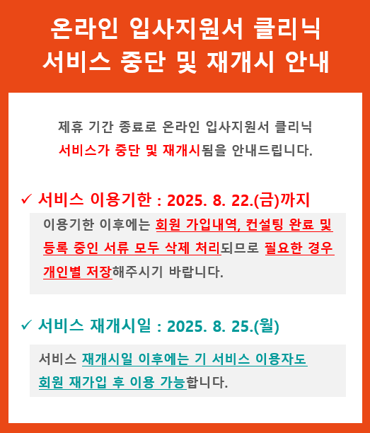 * 이용 불가 기간: 8월 23일(토) ~ 8월 24일(일)