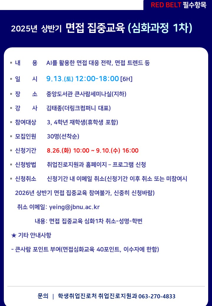 [RED BELT 필수항목] 면접 집중교육(★심화 1차) 참여자 모집 안내