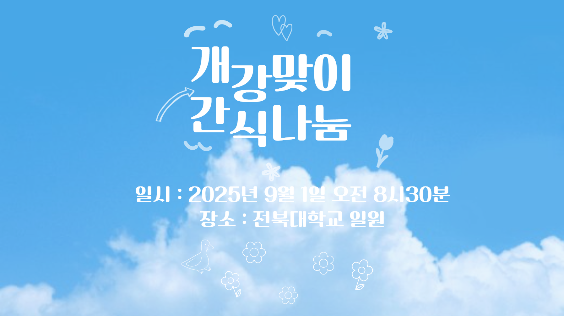 2025학년도 2학기 개강을 맞이하여, 간식나눔 행사를 실시합니다.