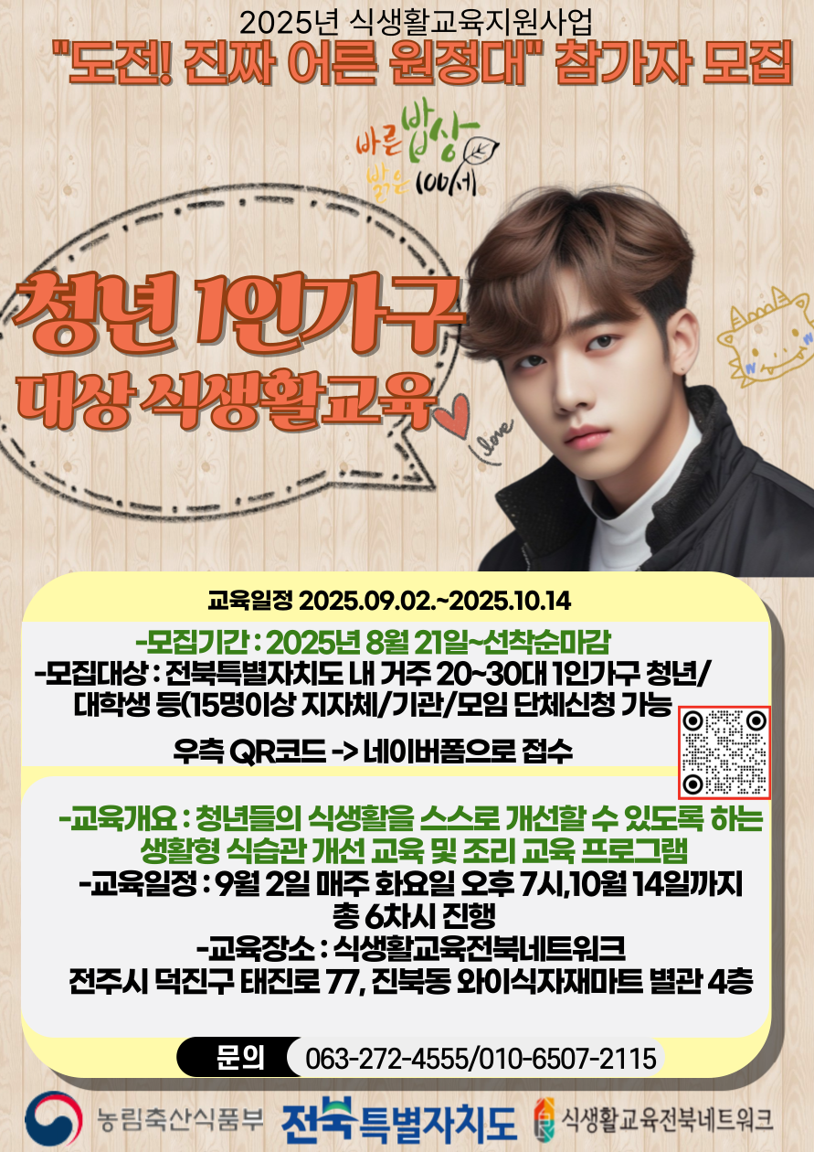 농림축산식품부에서 몇 해 째 지원해주고 있는 프로그램인데 이 기회에 건강한 요리와 식습관을 배워보시기를 권고드립니다.