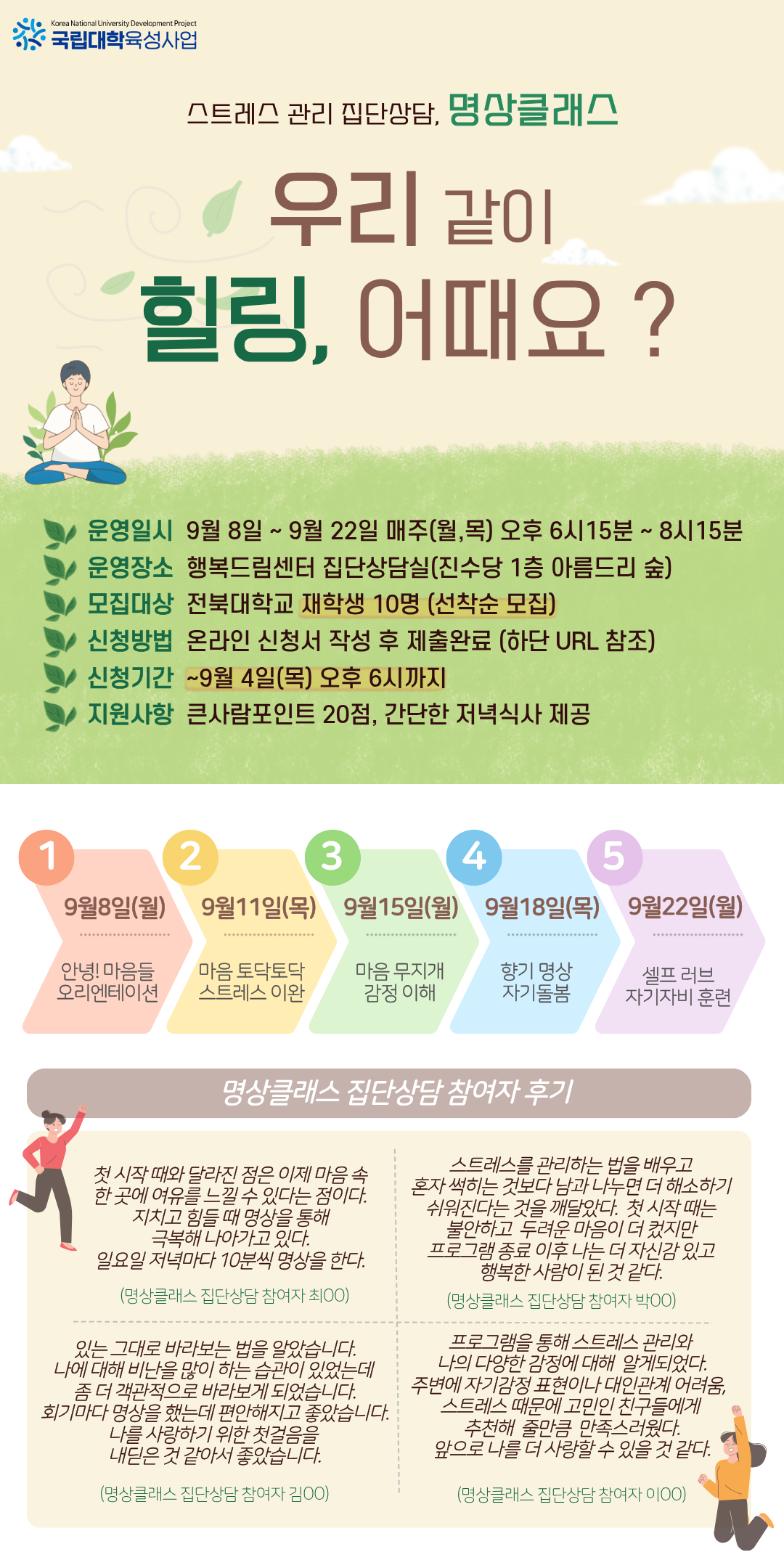 [행복드림] 스트레스 관리 집단상담, 명상 클래스 프로그램 신청 안내