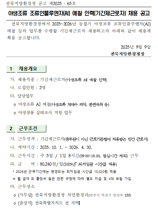 1. 채용직종 : 야생조류 ai 예찰 인력(기간제근로자)