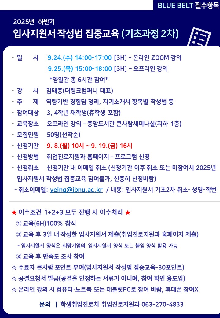 [BLUE BELT 필수항목] 입사지원서 작성법 집중교육(기초과정 2차) 참여자 모집 안내