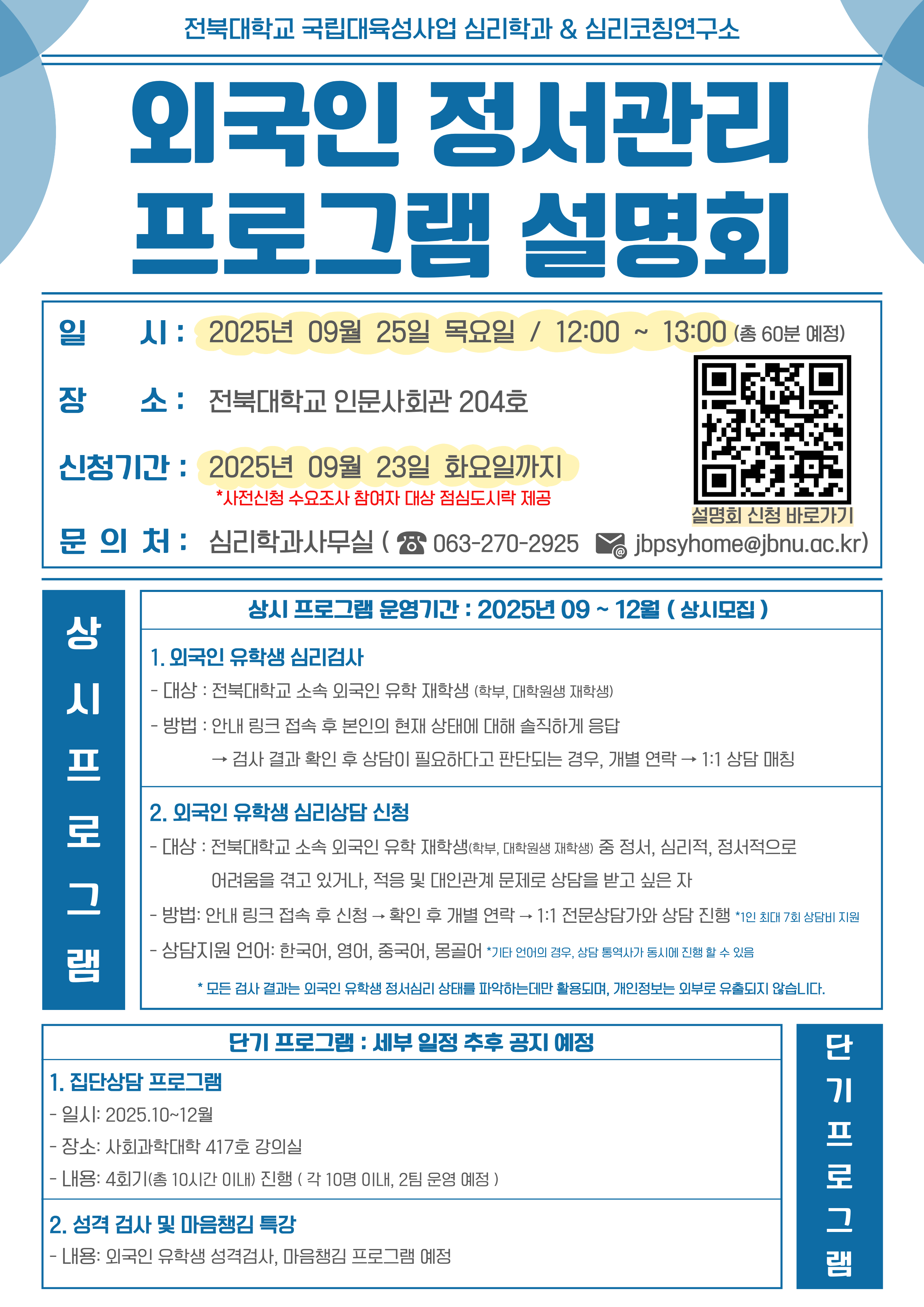 사. 문    의 : 심리학과 사무실(063-270-2925, jbpsyhome@jbnu.ac.kr)