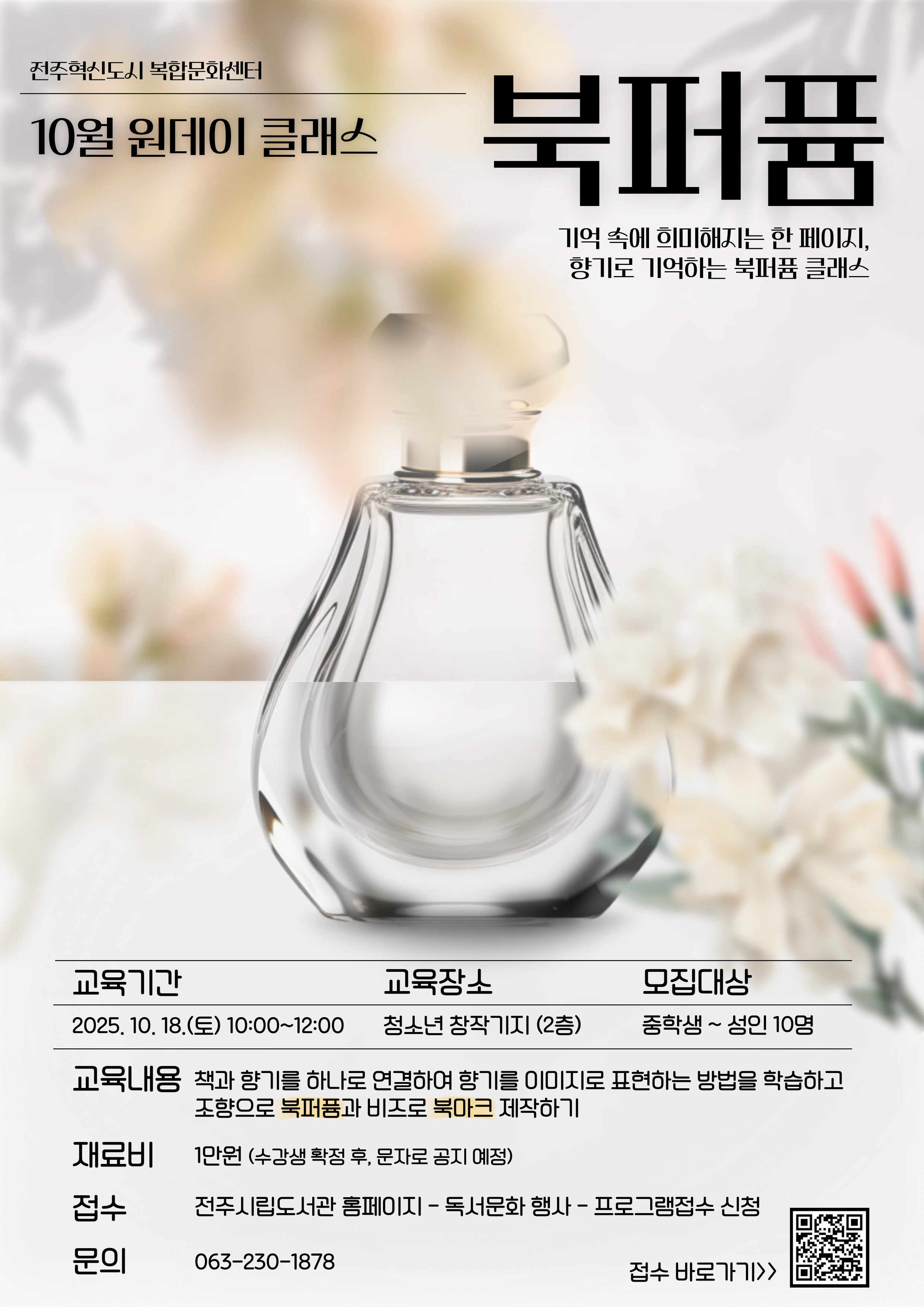 전주혁신도시 복합문화센터에서 북퍼퓸 원데이 클래스를 진행합니다.