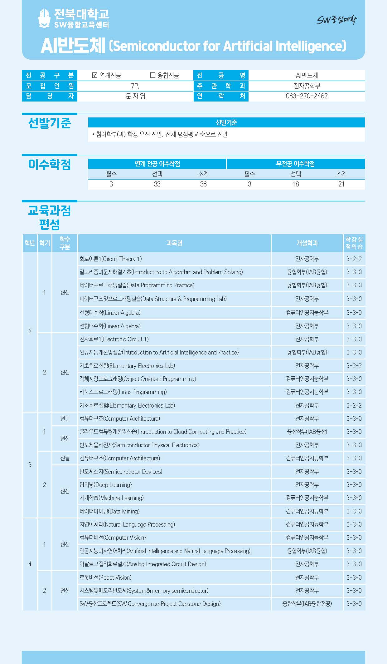 □ 문 의 처: 전공별 커리큘럼 및 담당자 연락처 참고