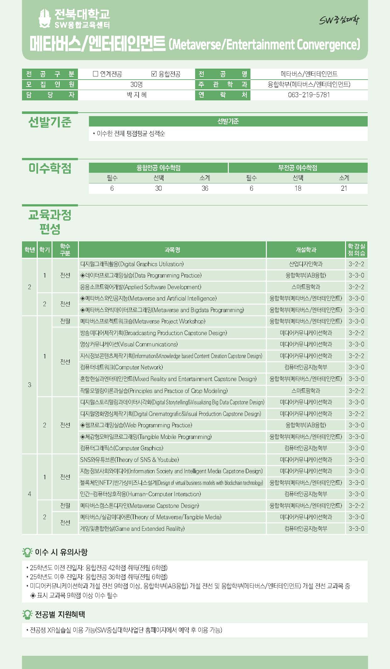 - SW융합전공: 예술융합창작, 메타버스/엔터테인먼트