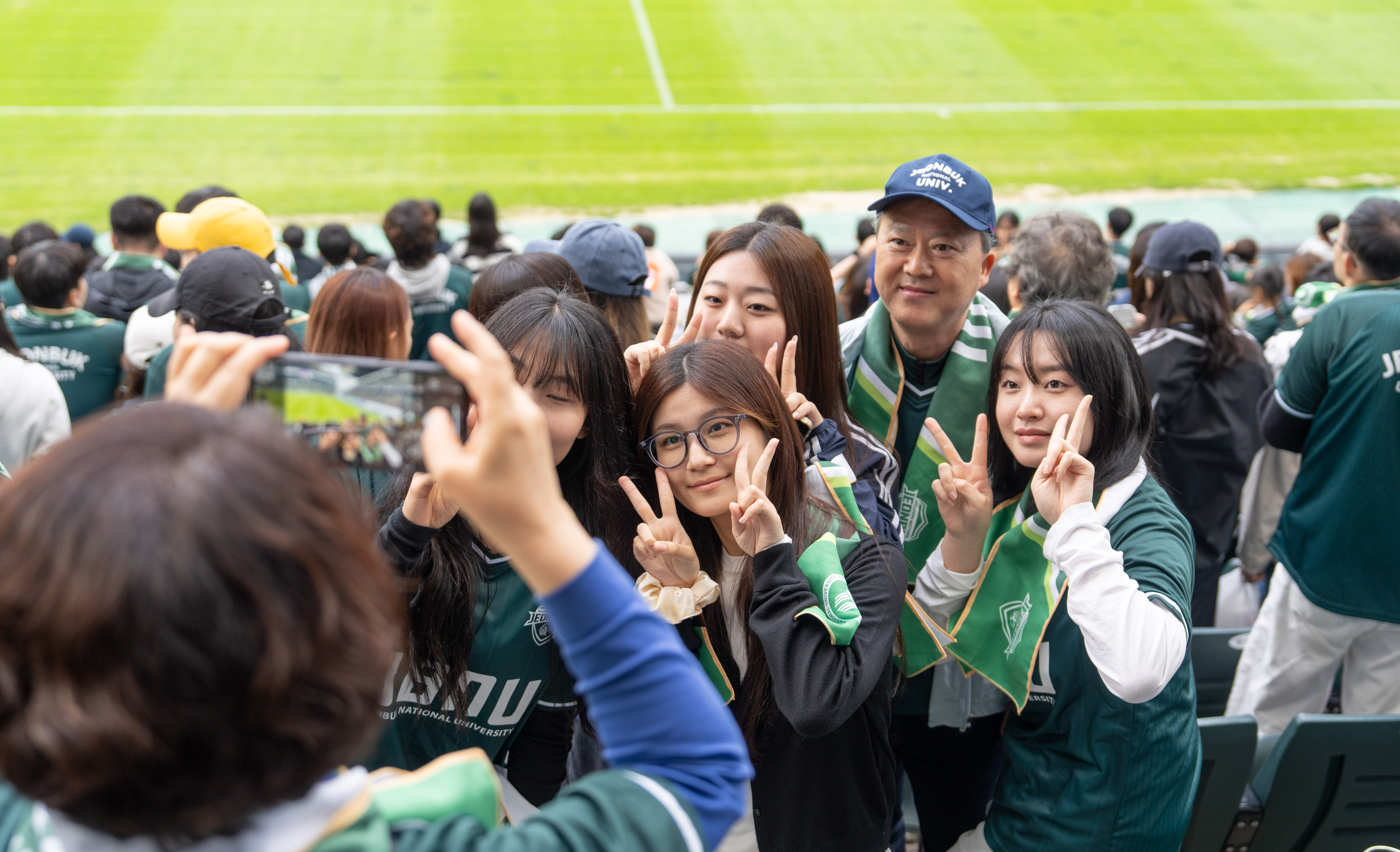 전북대학교와 전북현대모터스축구단(단장 이도현)이 지난 주말 ‘파트너데이’를 통해 하나 된 열정을 보여줬다. 10월 18일 오후 2시 수원FC와의 ‘2025 하나은행 K리그1 33라운드’ 경기가 전북대학교 파트너데이로 지정되면서, 양오봉 총장을 비롯한 교직원과 학생, 외국인 유학생 등 2,000여 명의 전북대 구성원들이 대거 경기장을 찾아 응원전을 펼쳤다.
