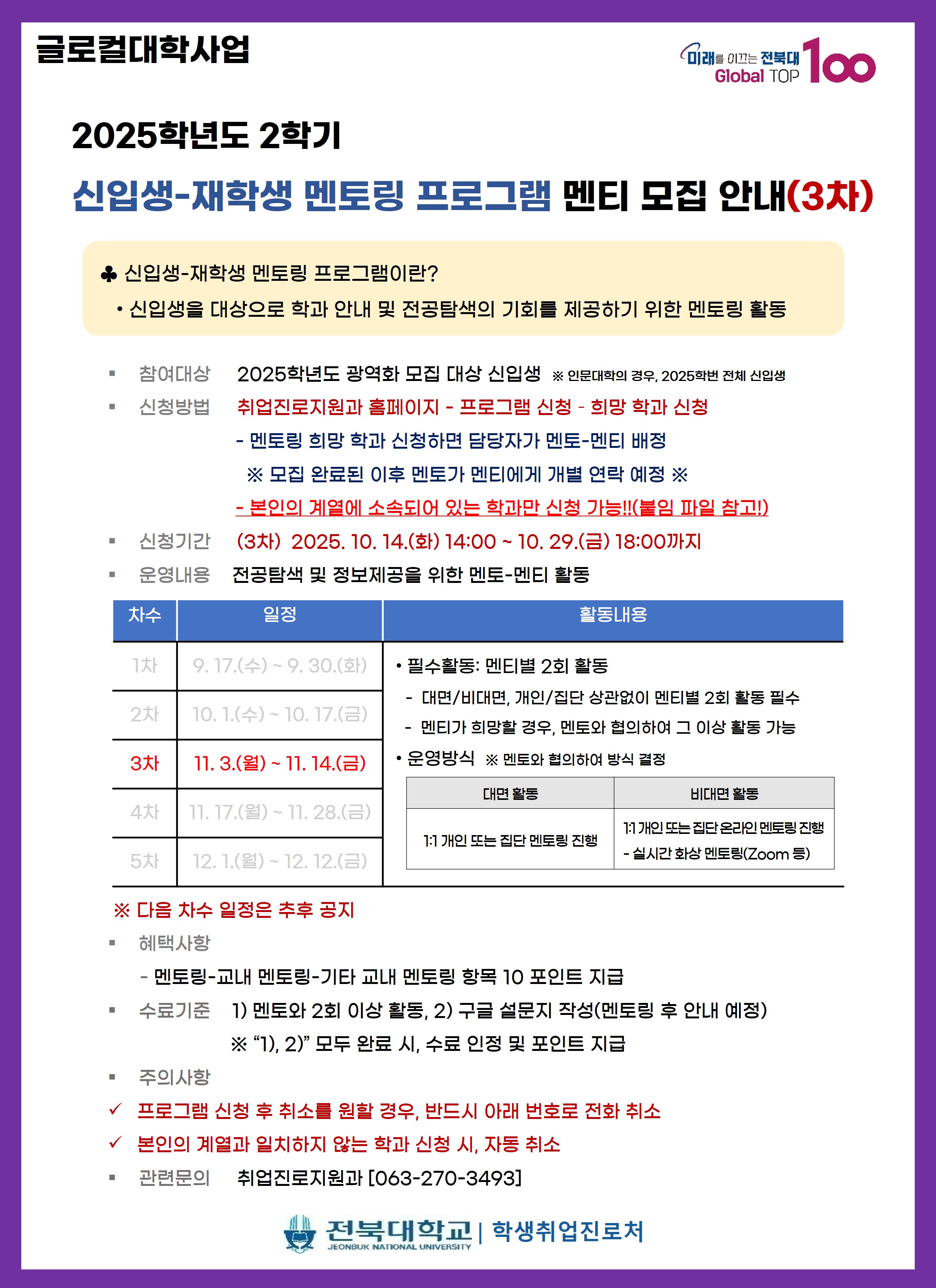 본 프로그램은 2025학년도 광역화 모집 대상 신입생에게 전공 탐색 기회를 제공하기 위해 개설된 멘토링 프로그램입니다.