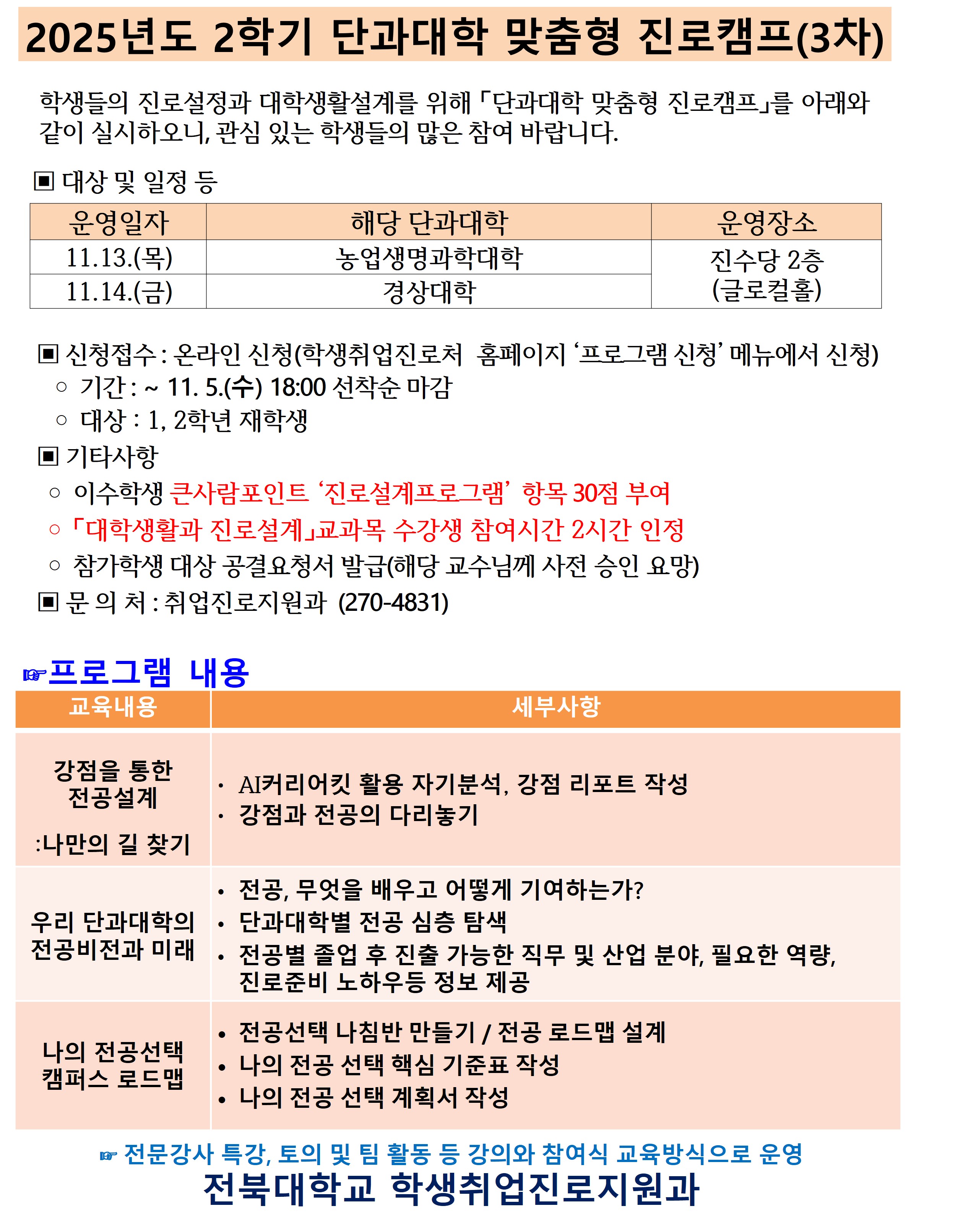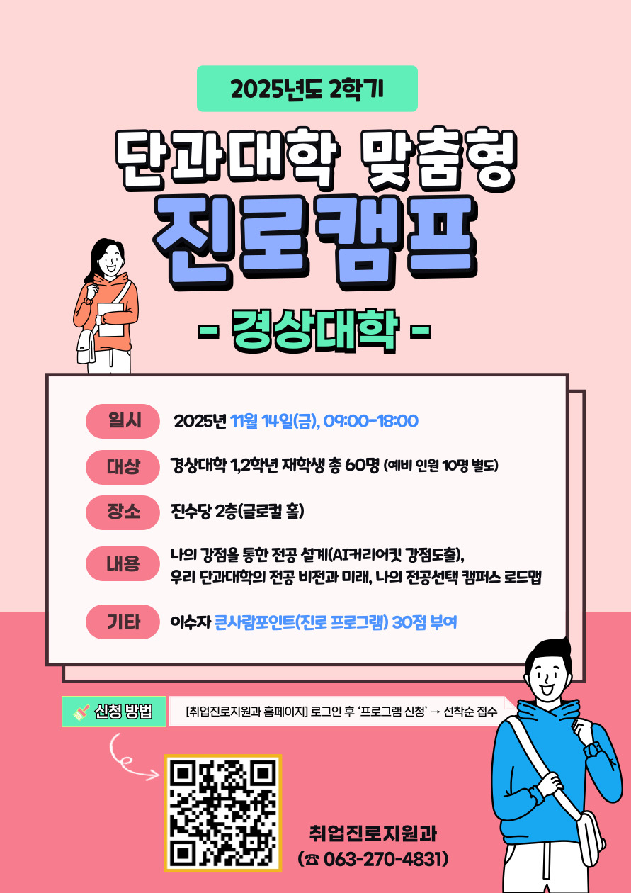 2025년 2학기 단과대학 맞춤형 진로캠프【경상대학】모집안내 <큰사람포인트 30점>