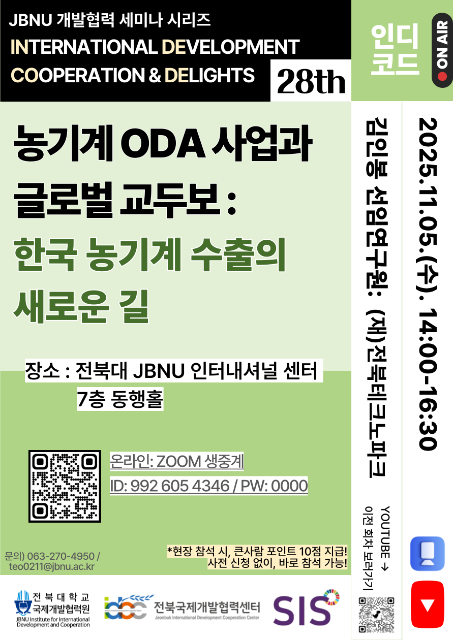 ⭐JBNU 개발협력 세미나 시리즈: 인디코드(International Development Cooperation & Delights)⭐