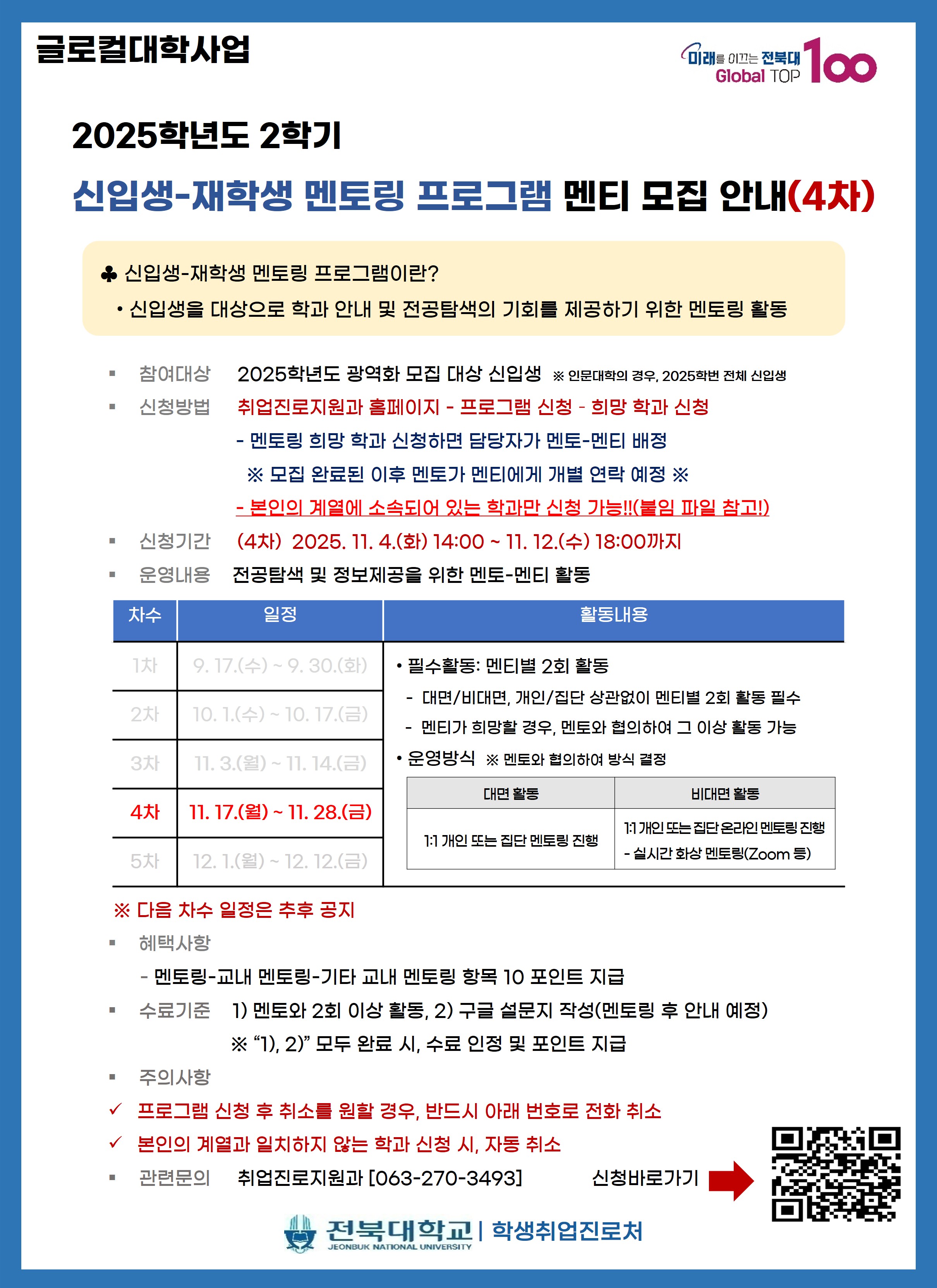 신입생-재학생 멘토링 프로그램 멘티 모집(4차)
