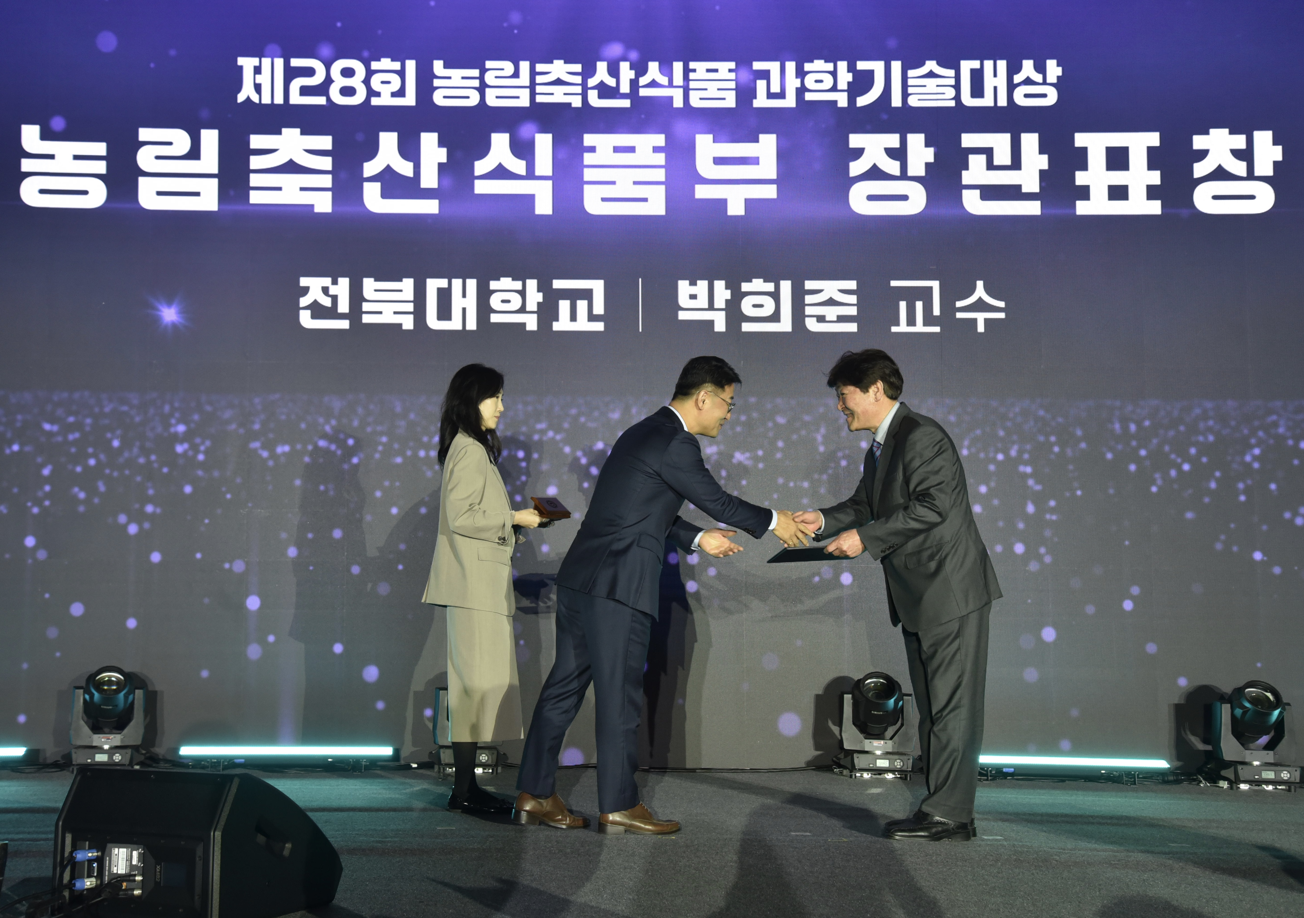 전북대학교 박희준 교수(생활대 주거환경학과)가 목재자원 고부가가치 첨단화 기술개발사업을 통한 탁월한 연구 성과로 최근 열린 제28회 농림축산식품 과학기술대상 시상식에서 학술연구기술 분야 장관상을 수상했다.