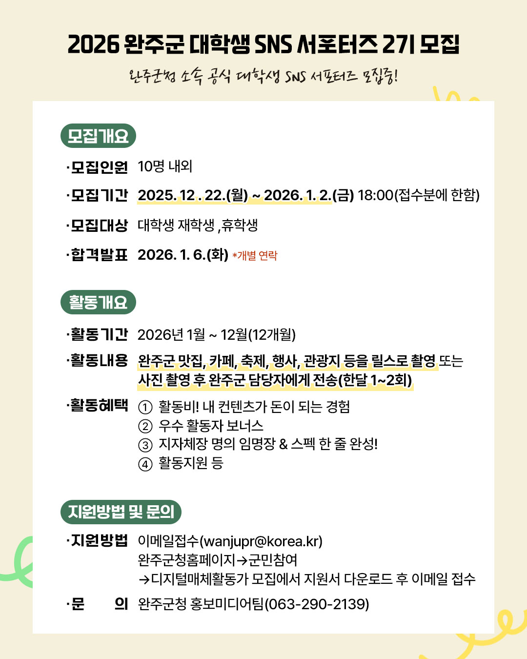 2026 완주군 대학생 SNS 서포터즈 2기 모집