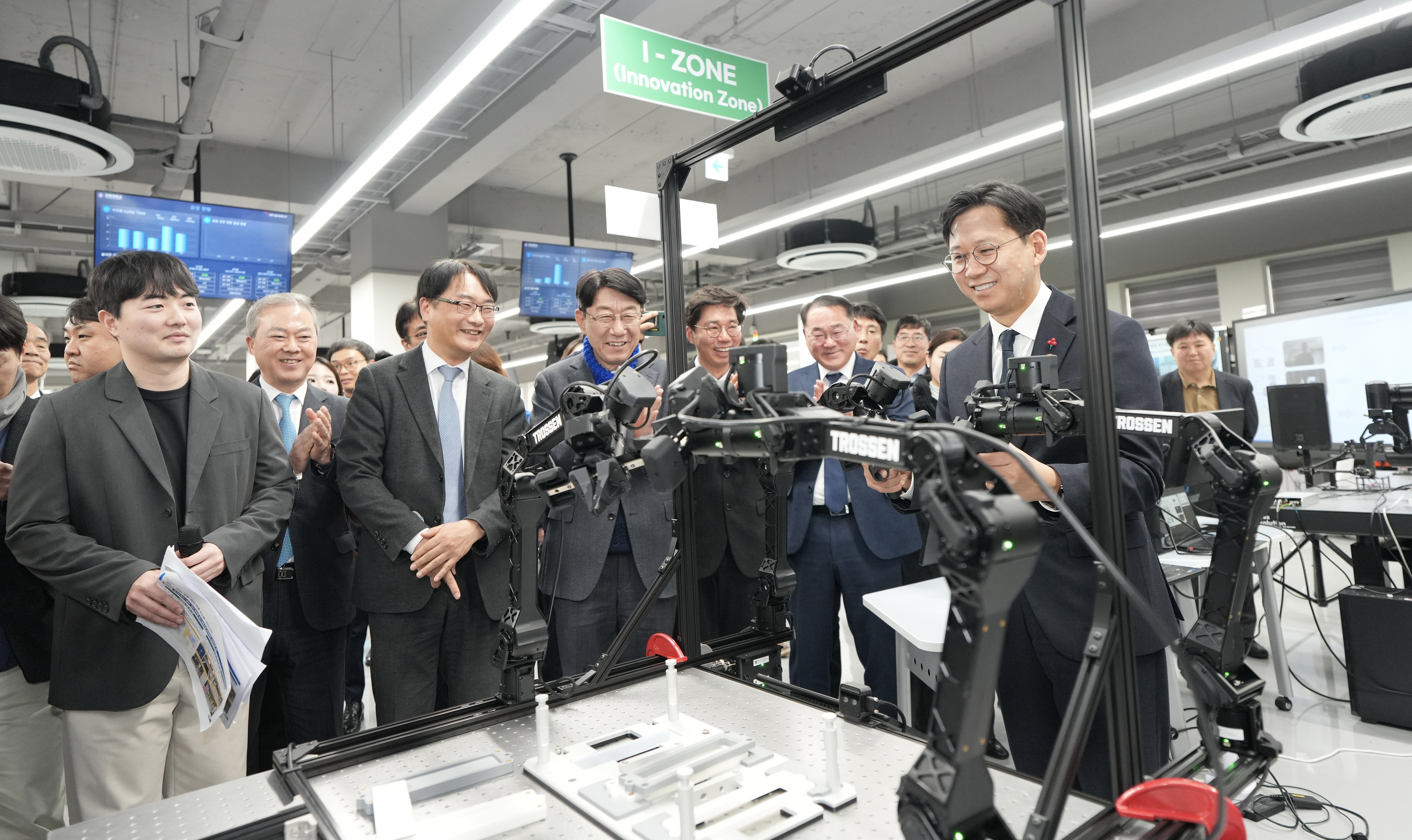 I-Zone(Innovation Zone)은 휴머노이드, 이동형 양팔로봇, 사족보행로봇, 매니퓰레이터, 모션캡처 장비 등을 활용해 학습 데이터 수집과 Sim-to-Real 검증이 이뤄지며, 멀티모달·LLM 기반 조작, 다중 로봇 협업, 텔레오퍼레이션 기반 데이터 수집 등 차세대 피지컬 AI 핵심 기술을 실제 환경에서 실험·검증할 수 있도록 구축됐다.