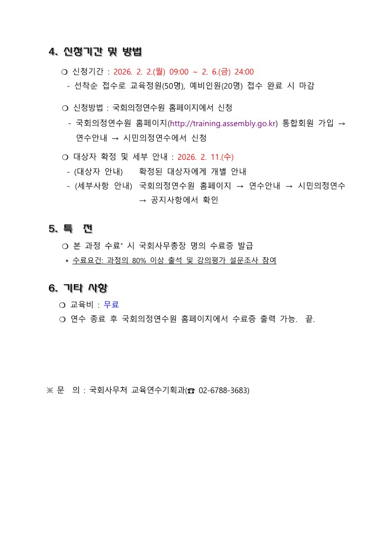 (국회사무처) 2026년도 국회 대학(원)생 아카데미(1기) 과정 안내