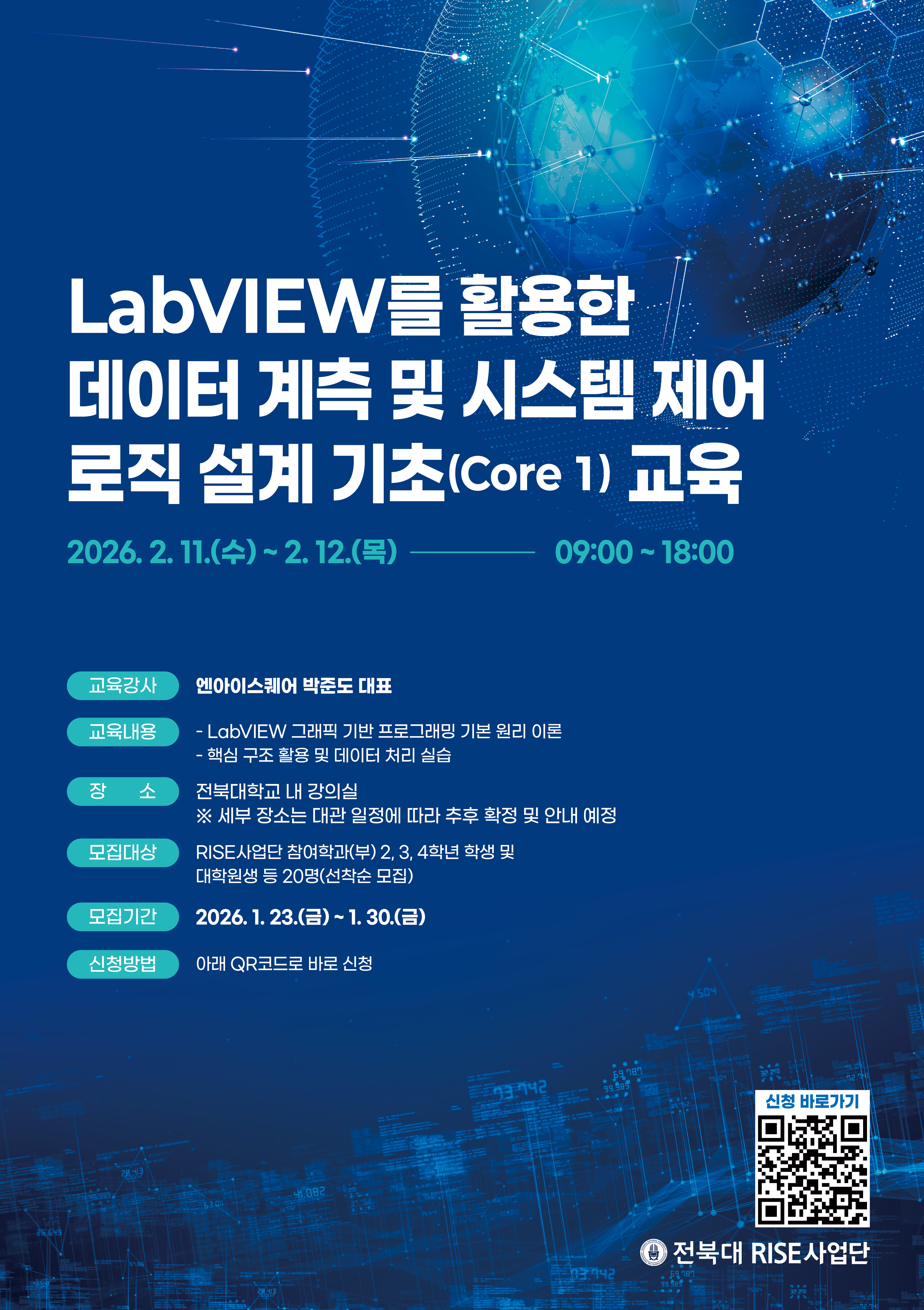 [RISE사업단] (재공고) LabVIEW를 활용한 데이터 계측 및 시스템 제어 로직 설계 기초(Core1)교육 모집