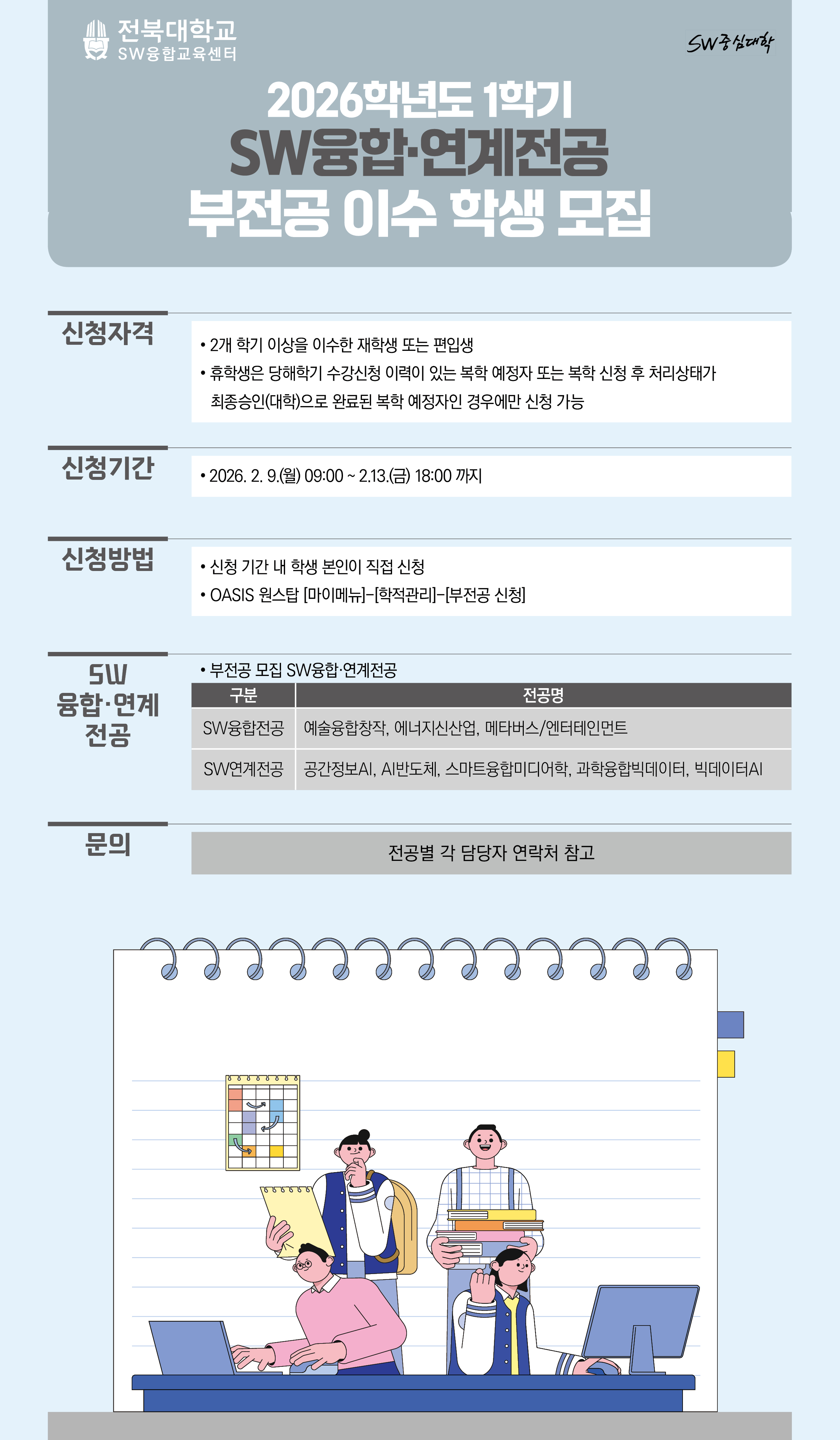 [SW융합교육센터] 2026학년도 1학기 SW융합·연계전공 부전공 선발 안내 (~2.13.(금) 18시까지)