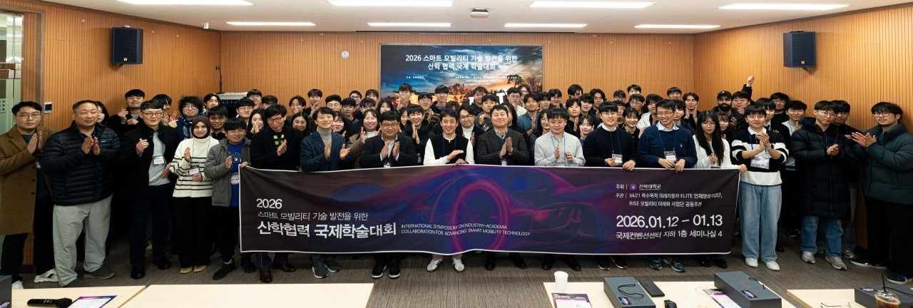 전북대학교 대학원 기계항공전기융합공학과(BK21 특수목적 미래자동차 ELITE 인재양성사업단)와 RISE 모빌리티 미래화사업(사업 책임자: 임익태, 기계설계공학부)이 공동 주관한 ‘2026 스마트 모빌리티 기술 발전을 위한 산학 협력 국제학술대회’가 지난 1월 12일부터 13일까지 전북대학교 컨벤션센터에서 성황리에 개최됐다.