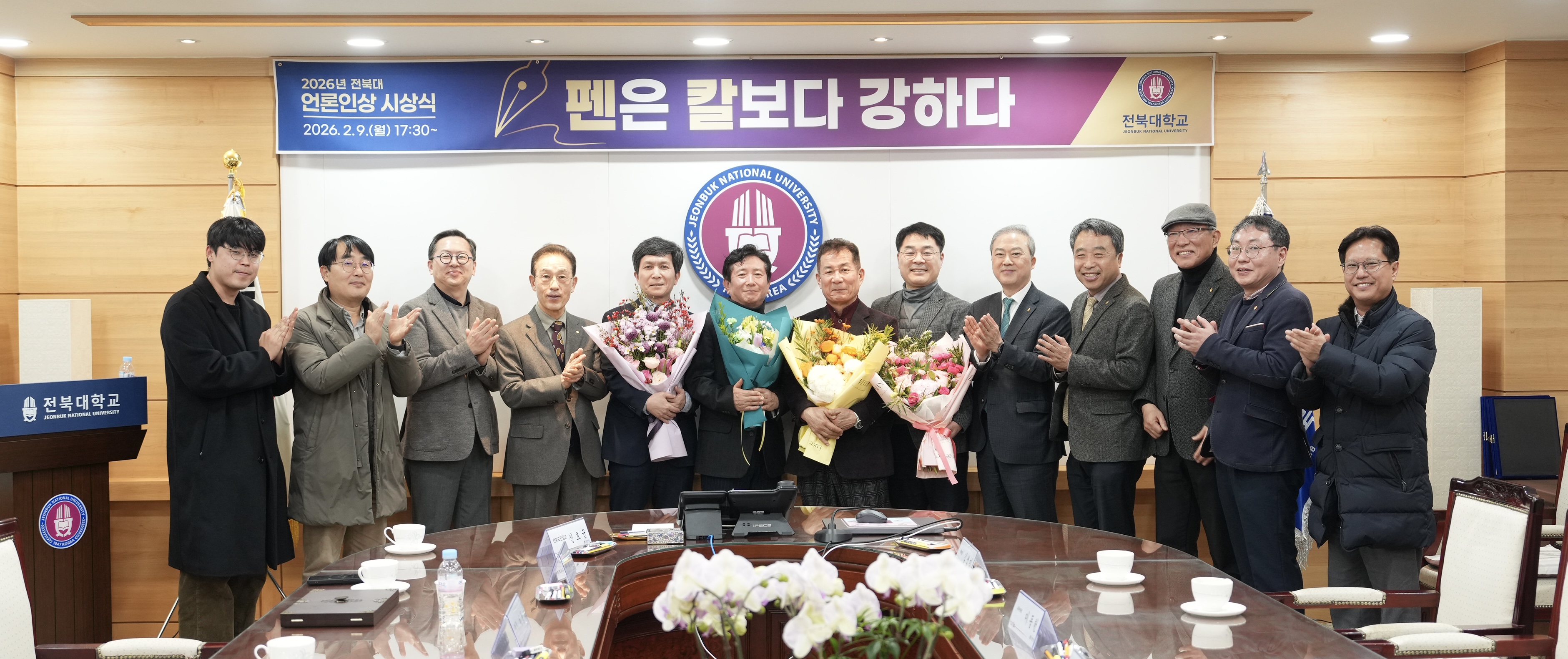 전북대학교와 전북대언론인회(회장 이창익)가 언론인의 사명과 정론직필을 실천해 온 동문 언론인을 대상으로 수여하는 2026년 전북대언론인상 시상식이 2월 9일 오후 5시 30분 전북대학교에서 열렸다.