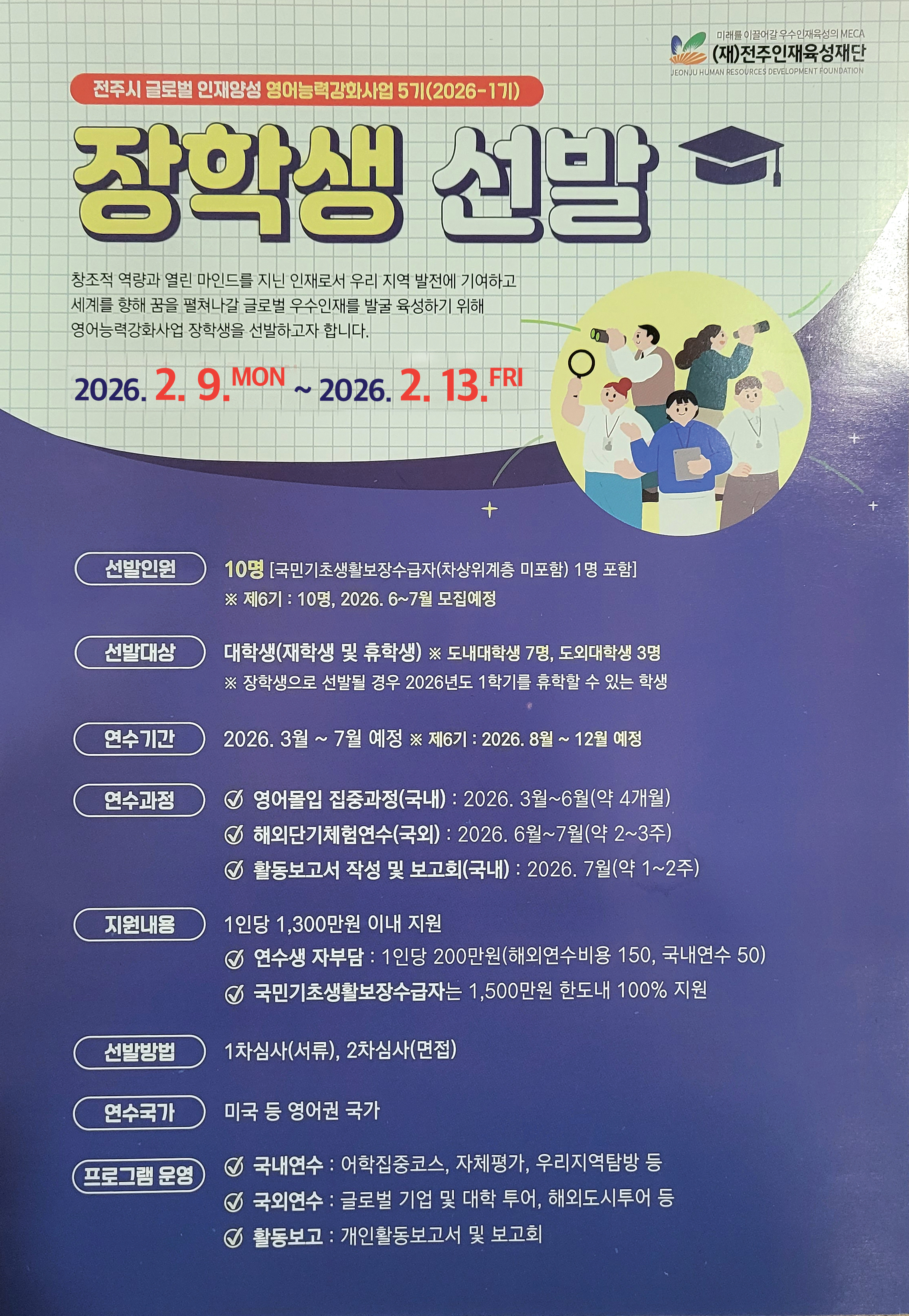 전주시 글로벌 인재양성 영어능력강화사업 5기(2026-1기) 장학생 선발합니다