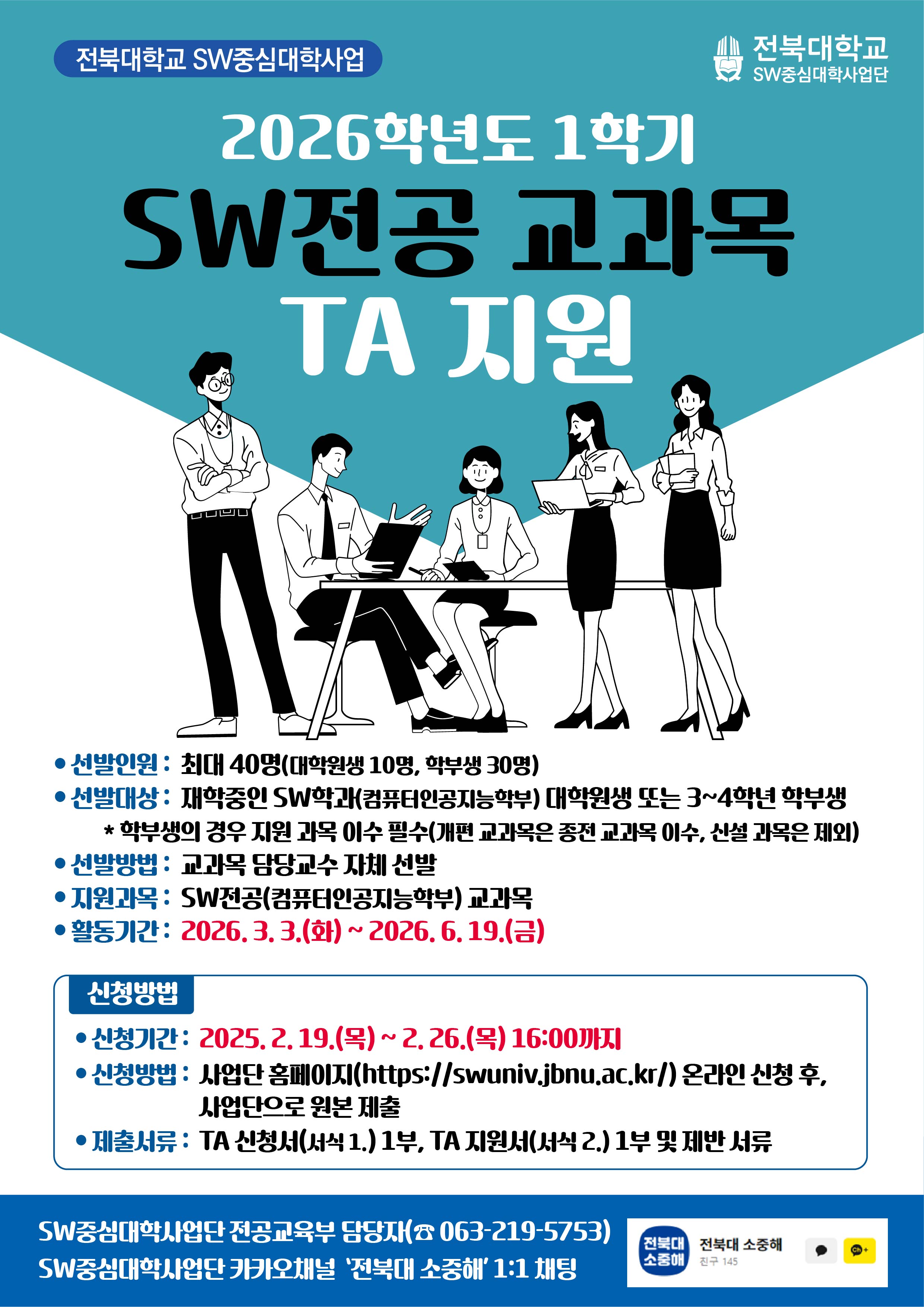 [SW중심대학사업단] 2026학년도 1학기 SW전공 교과목 TA 지원 모집(신청기간: 2026.2.19.(목) ~ 2.26.(목))