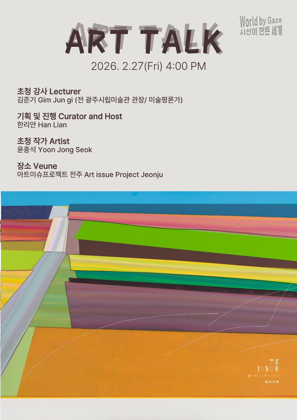 안녕하세요 아트이슈프로젝트 전주에서 아트토크 프로그램이 2월 27일 금요일 진행됩니다.