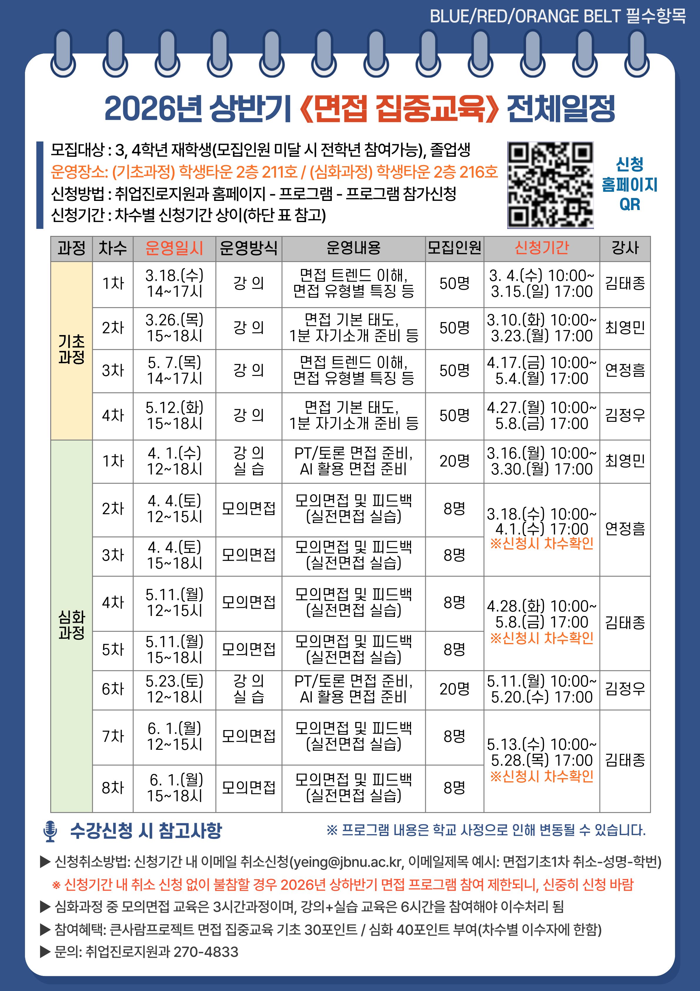 [BLUE/RED/ORANGE BELT 필수항목] 2026년 상반기 면접 집중교육 일정 및 신청 안내