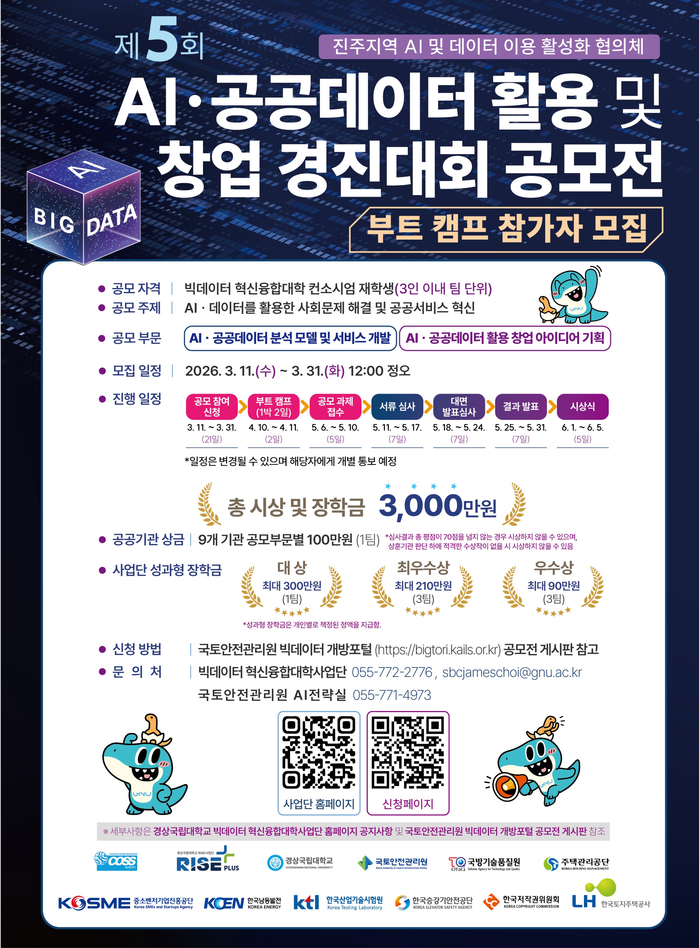 [빅데이터 혁신융합대학] 경상국립대 제5회 AIㆍ공공데이터 활용 및 창업 경진대회 공모전