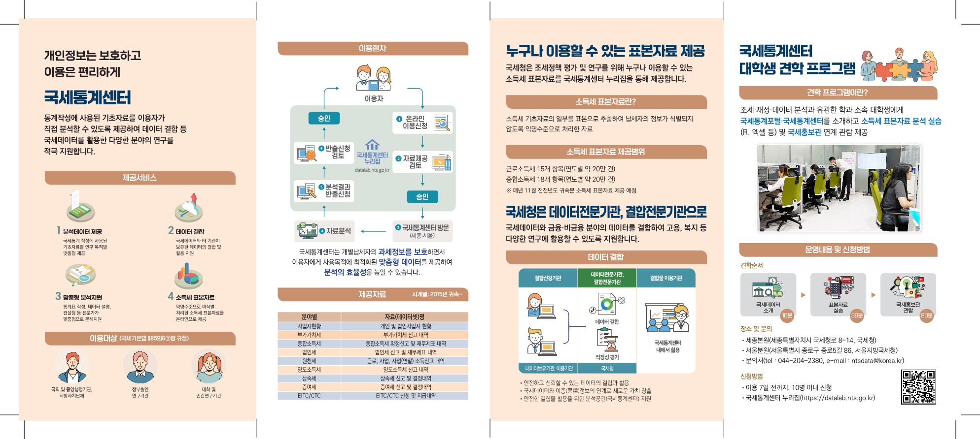 국세청에서 국세통계센터 대학생 견학 프로그램을 진행합니다. 관심있는 학생들의 많은 신청 바랍니다.