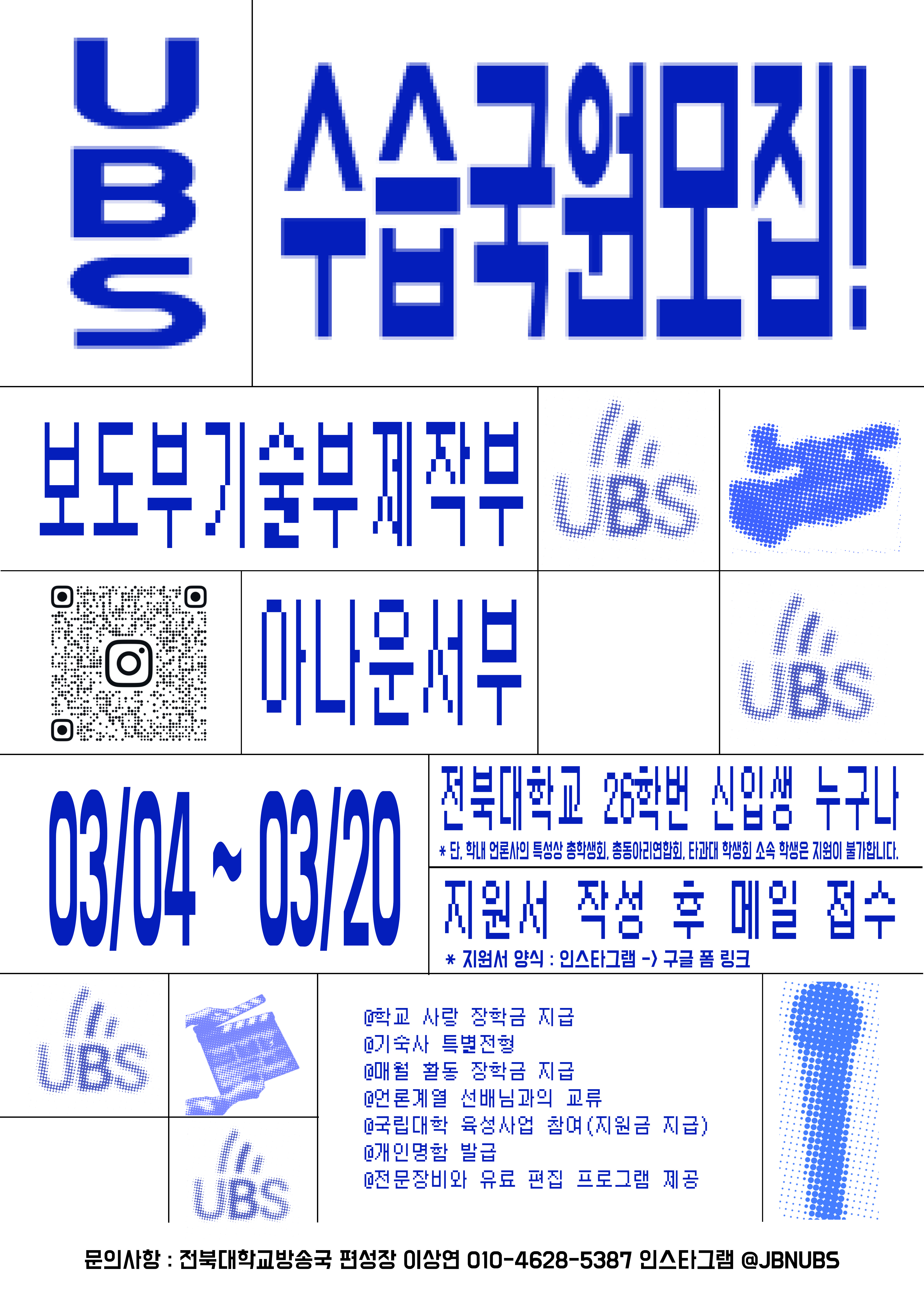전북대학교 방송국 UBS에 대해 자세하게 알고 싶으시다면 유튜브 채널, 전북대학교 신문방송사 홈페이지, 인스타그램을 확인해 주세요 (인스타그램 프로필 링크트리)