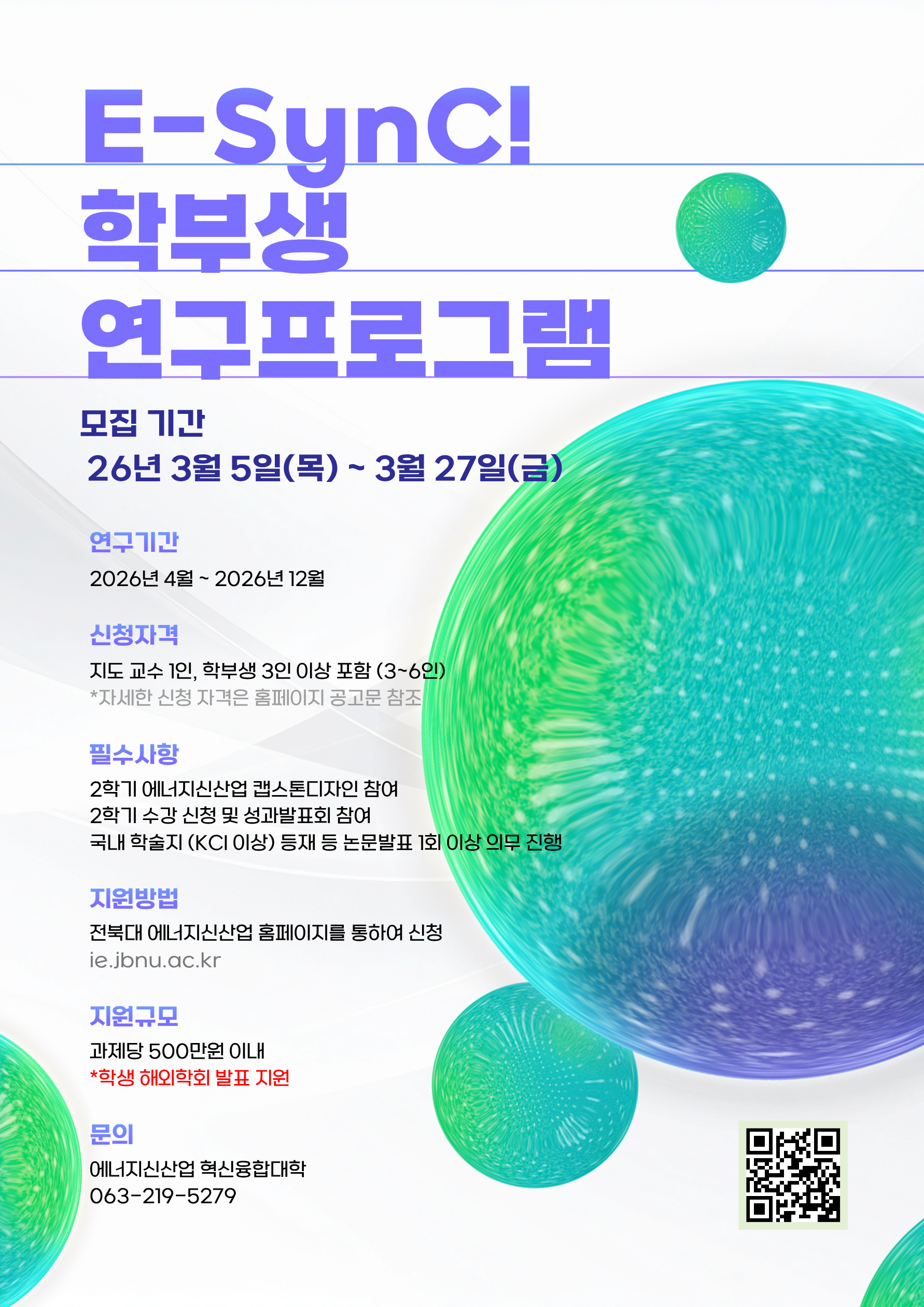 (에너지신산업 혁신융합대학) E-SynC! 2026년도 학부생 연구프로그램 모집