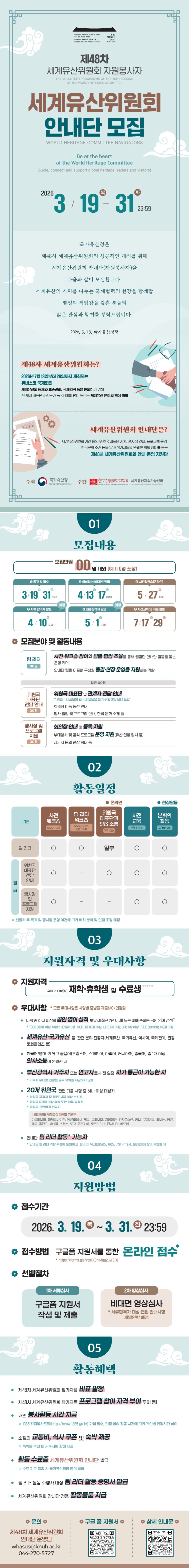 한국전통문화대학교에서 제48차 세계유산위원회 안내단을 모집합니다. 관심있는 학생들의 참여 바랍니다.