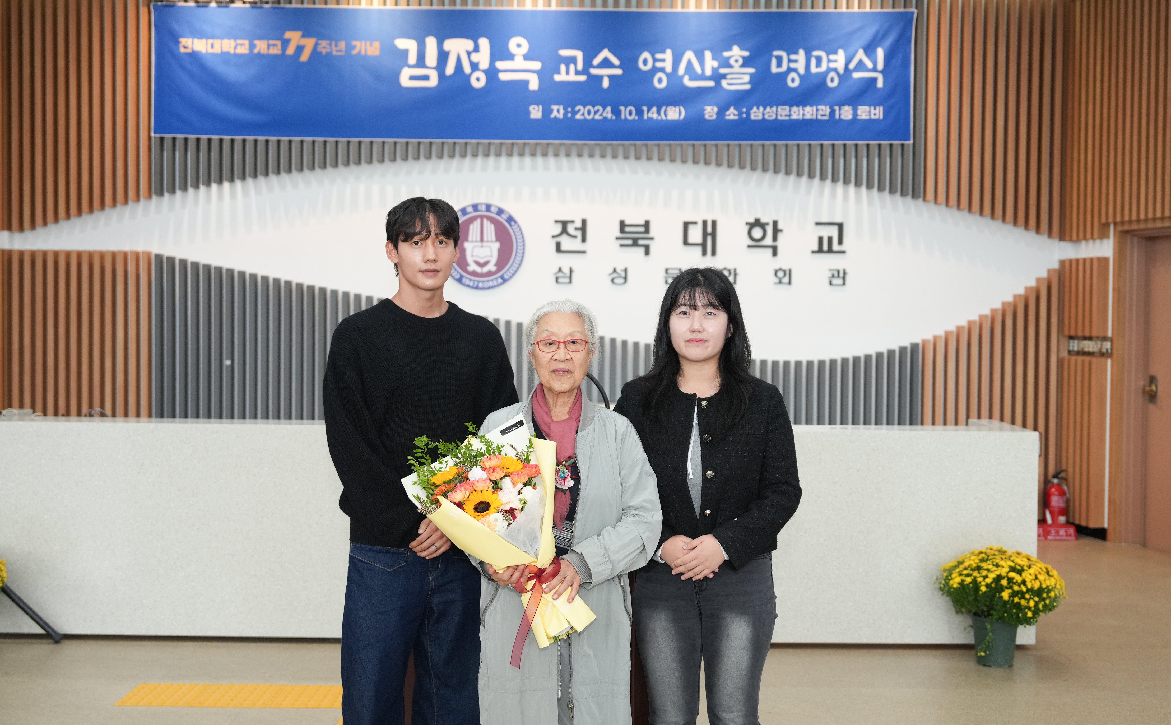 김정옥 이사장은 “가진 것을 사회에 환원해야 한다는 어머니(김희경유럽정신문화장학재단 초대 이사장)의 고귀한 뜻을 받들어 제2의 고향인 전북대와 전주를 위해 기부를 이어왔다”며 “현대화된 삼성문화회관의 영산홀과 건지아트홀이 지역 문화의 중심지가 되고, 인문학 전공 학생들이 더 큰 꿈을 꾸는 자양분이 되길 바란다”고 소회를 밝혔다.