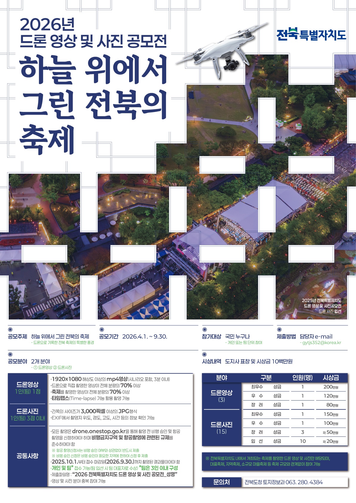 「2026년 전북특별자치도 드론 영상 및 사진 공모전」 개최 알림