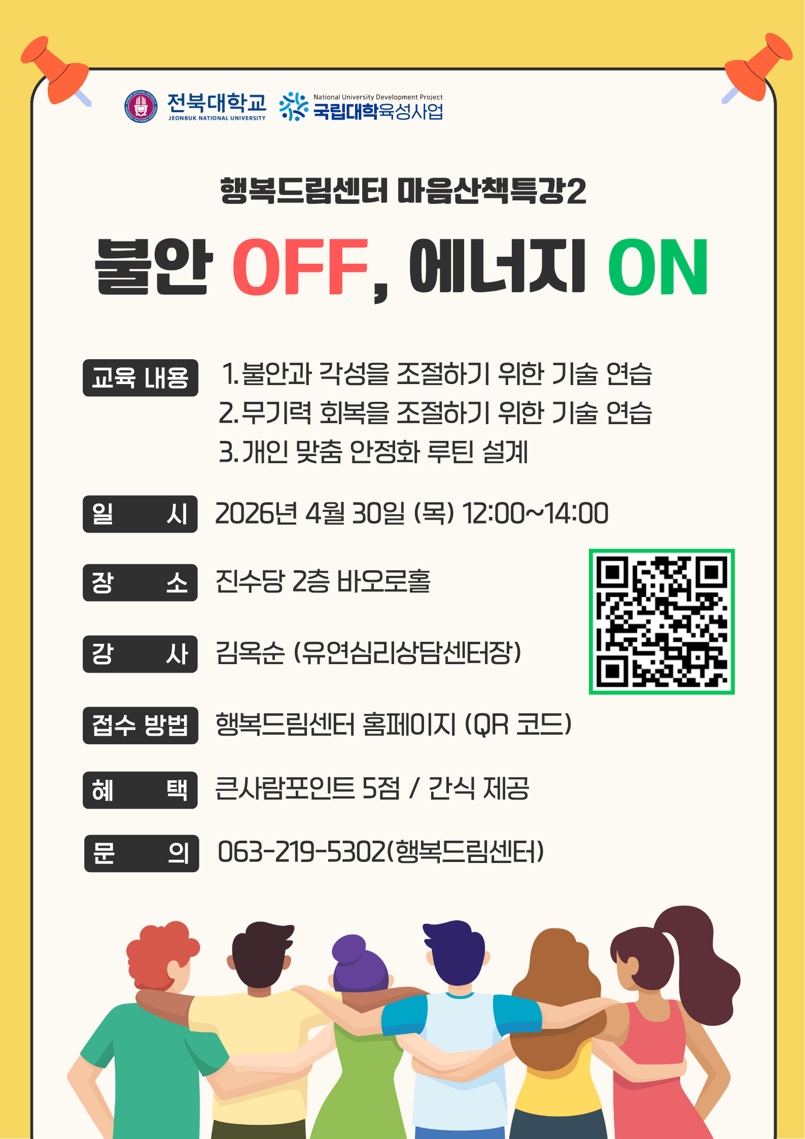 [행복드림센터] 마음산책특강 2 - "불안 OFF, 에너지 ON" 프로그램 신청 안내