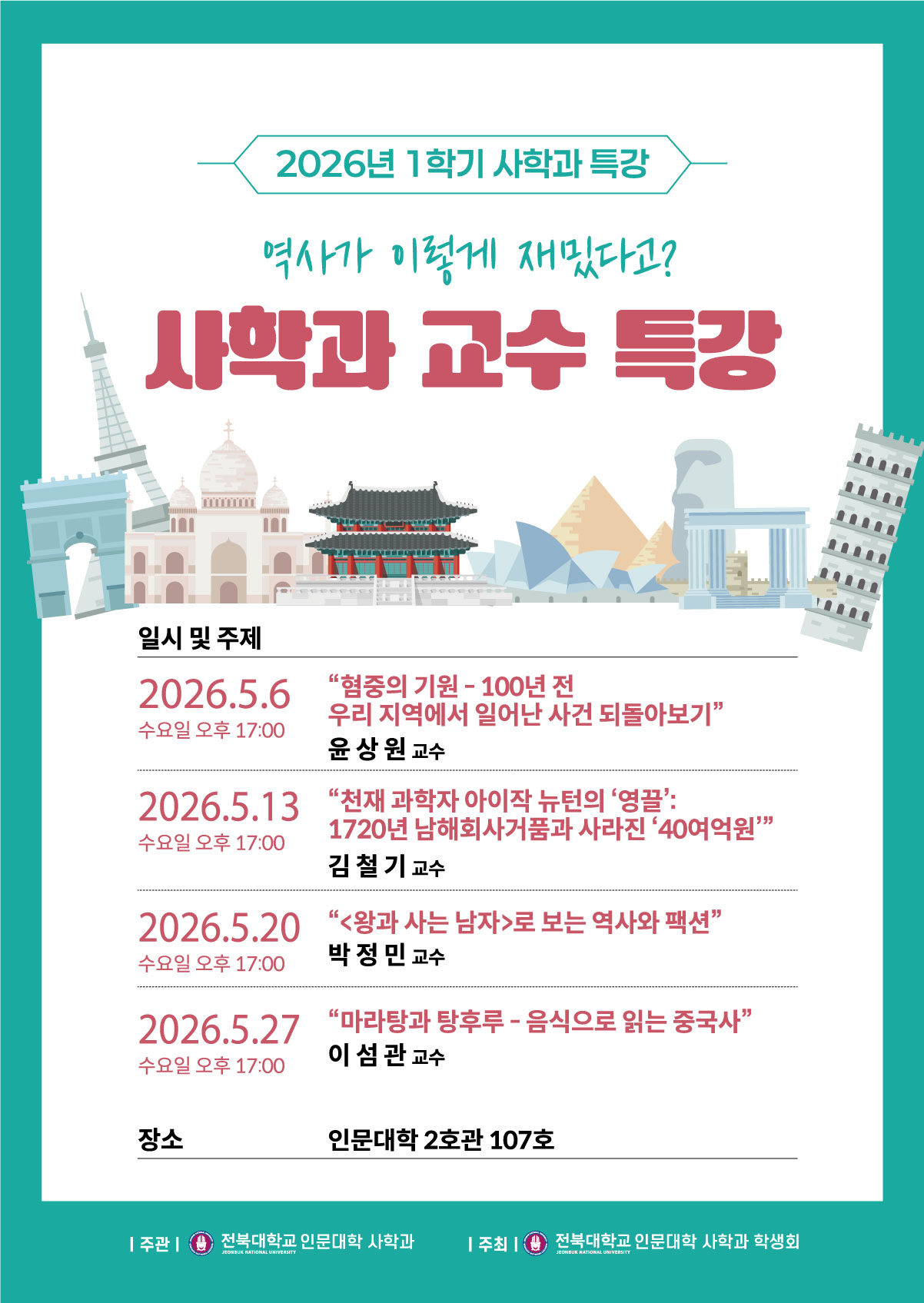 [사학과] 2026학년도 1학기 사학과 교수 특강 안내