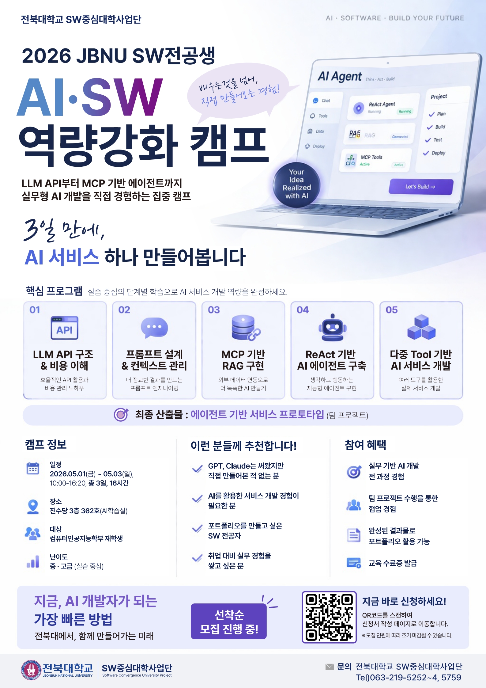 [SW중심대학사업단] 2026 JBNU SW전공생 AI.SW 역량강화 캠프 안내