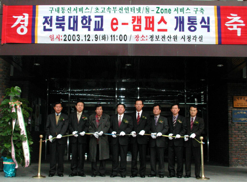 이번 개통식에서 두재균 총장은 “우리 대학은 이번 e-캠퍼스 구축을 통해 국립대학교 최초로 통신망과 전산망을 통합하여 획기적인 비용절감의 기회를 갖게 되었다”며 “이를 위해 노력해준 많은 분들에게 감사드린다”며 말하였다.