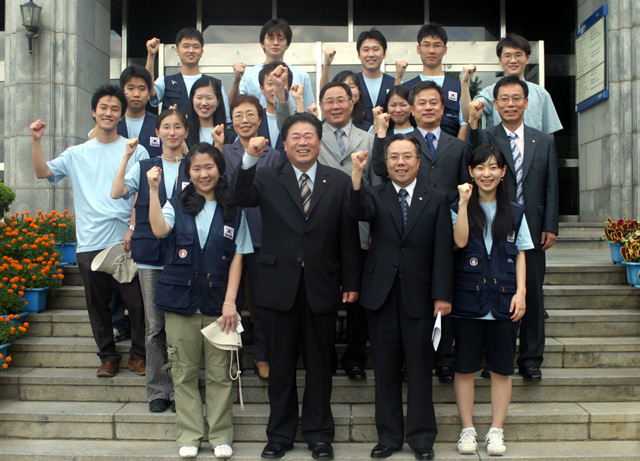 우리 대학 2004 방글라데시 의료봉사단이 7월 19일(월) 오후 본부 4층 접견실에서 두재균 총장과 주찬웅 단장 및 김민호 교수, 양준원 전공의, 대학생 봉사단원 13명이 참석한 가운데 발대식을 갖고 7월 24일(토)부터 8월 6일(금)까지 2주간의 일정으로 방글라데시로 출국한다.