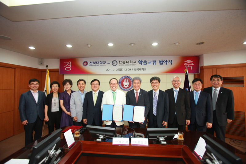 양 대학은 7월 22일 정오에 우리대학 본부 8층 회의실에서 서거석 총장과 김영길 총장을 비롯한 양 대학 보직자들이 참석한 가운데 학술교류 협약식을 가졌다.