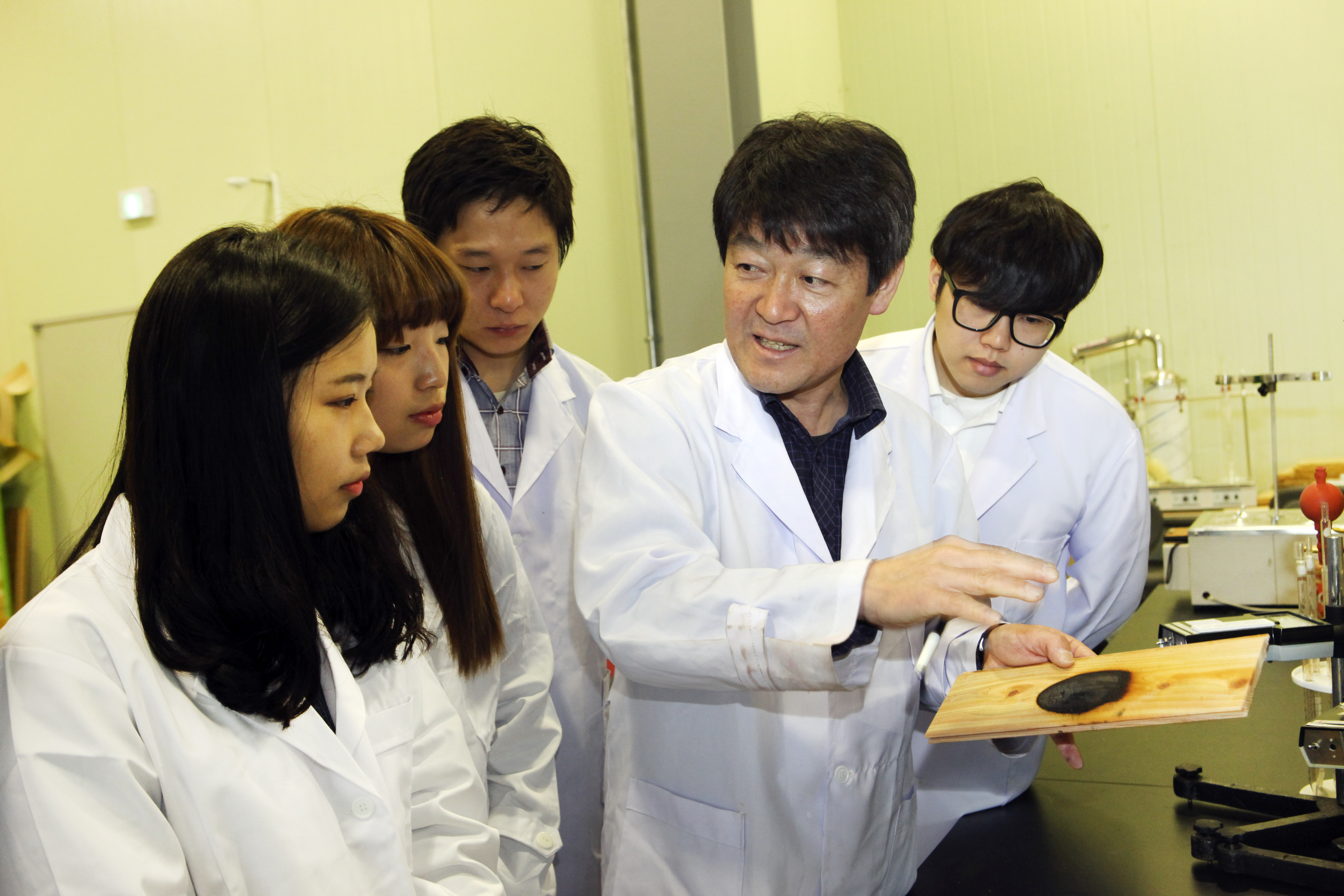 에코하우징은 2008년 설립된 학교기업으로 ‘난연목재의 제조방법’ 등 5개의 특허기술을 기반으로 불에 타지 않는 친환경 목재 개발에 성공했고, 국내 최초로 ‘방염필증’이 부착된 ‘방염 루바’를 생산하는데 성공했다.