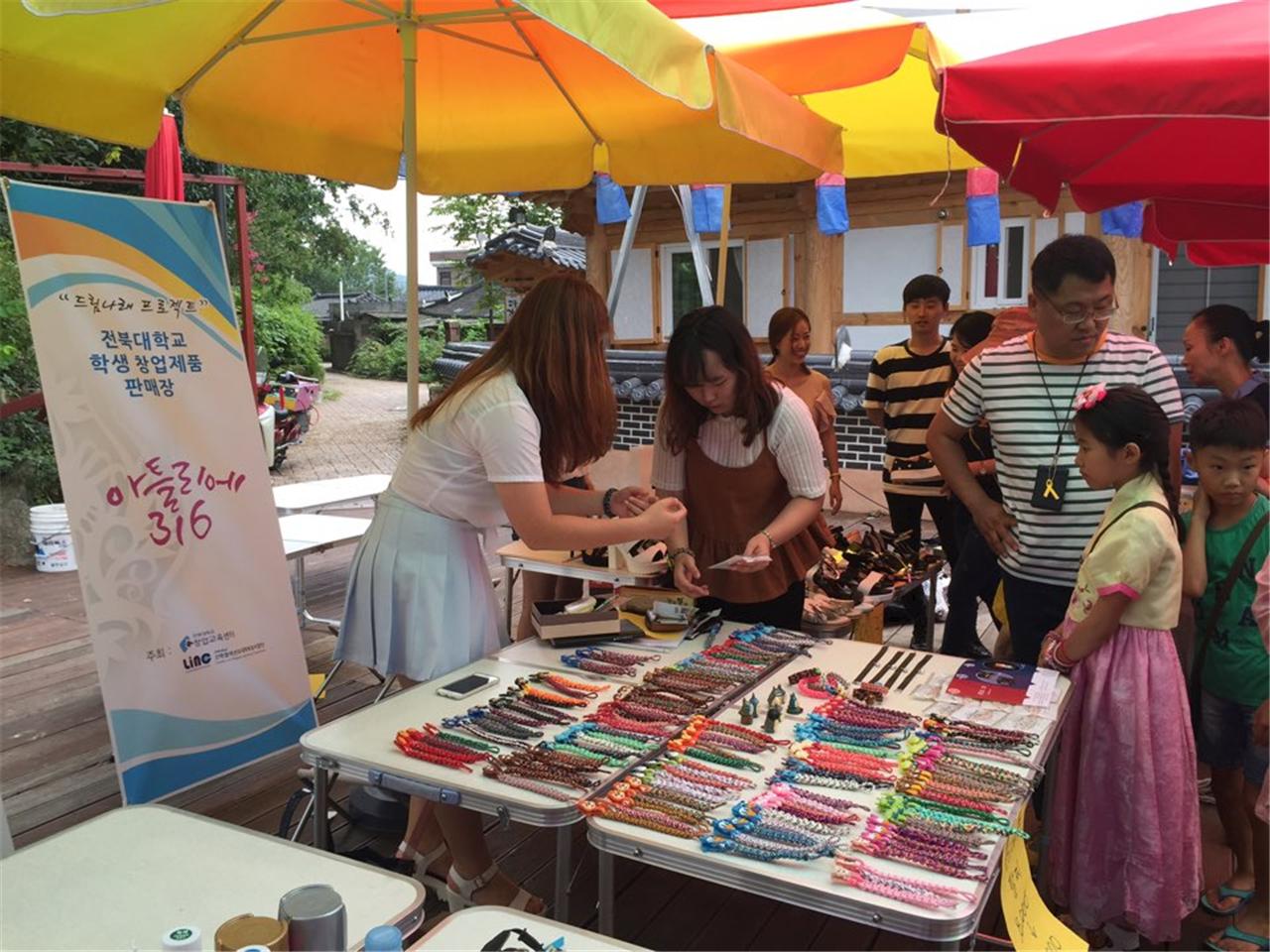 우리대학은 주말이었던 지난 22일 한옥마을 내 비빔터 청년시장에 패션 신발과 액세서리를 판매하는 업체인 ‘언니구두’와 의류학과 재학생들이 모여 DIY 액세서리를 제작·판매하는 ‘아틀리에 316’, 3D 프린터를 이용한 체험프로그램을 운영하는 ‘Real 3D 프린터’ 등 3곳을 우선 개소, 관광객들에게 제품 판매 및 체험 프로그램을 운영해 큰 호응을 얻었다.
